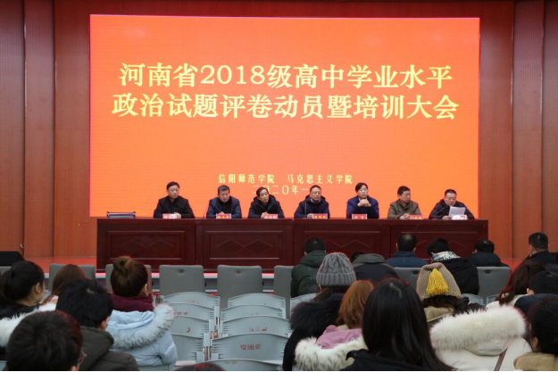 1月6日下午,beat365官网在逸夫楼报告厅召开河南省2018级高中学业水平政治试题评卷动员暨培训大会。学院党委书记唐国战,党委副书记徐永新、何晓坚,副院长周智、黄世明、程晋富,当代马克思主义研究所副所长门献敏出席会议,200余名评卷人员参加本次动员大会。会议由周智主持。