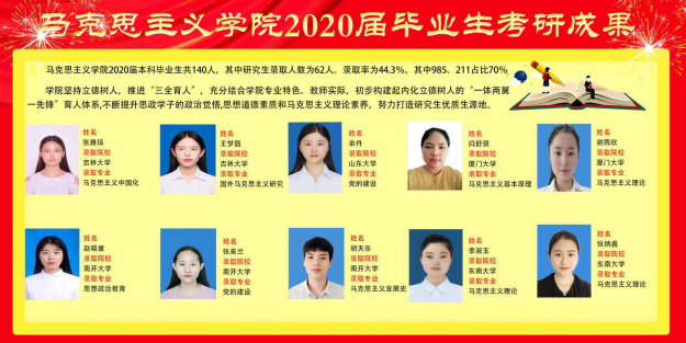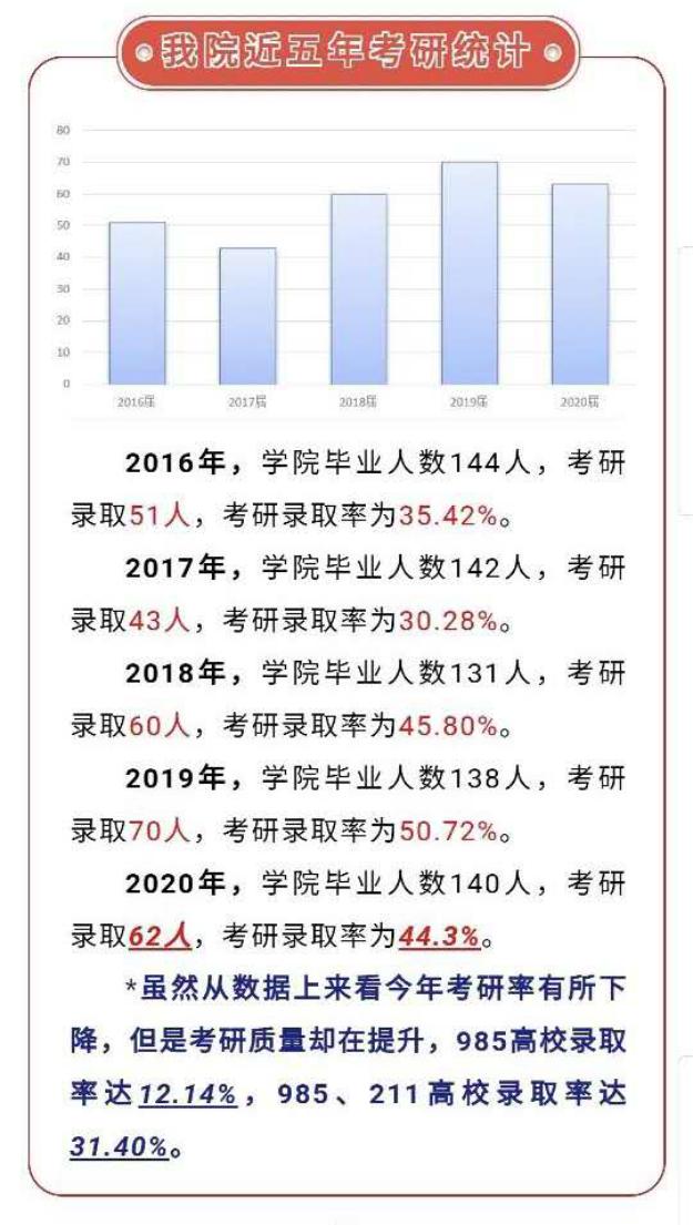 2020年的考研告一段落,beat365亚洲版官网成果斐然。学院2020届毕业生共140人,有63名学生成功考取硕士研究生,考研录取率达45%,985高校录取率达12.14%,985、211高校录取率达31.40%,今年考研率有所下降,但是考研质量却在稳步提升。在本届毕业生中,女生607宿舍的六名学生均考研成功,“学霸宿舍”实至名归。