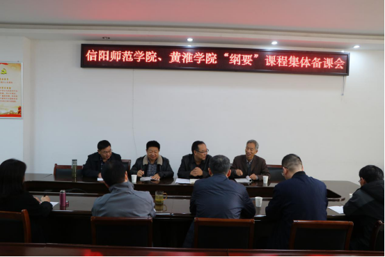 为进一步推进落实高校马院结对帮扶工作,10月30日上午,信阳师范学院、黄淮学院《中国近现代史纲要》课集体备课会在社科楼323会议室召开。学院副院长周智,当代马克思主义研究所副所长徐永新,“纲要”教研室主任王传富,以及两校“纲要”课教师代表刘玉民、刘海峰、余全友、袁运福、陈杰、惠黎文参加备课会。会议由王传富主持。