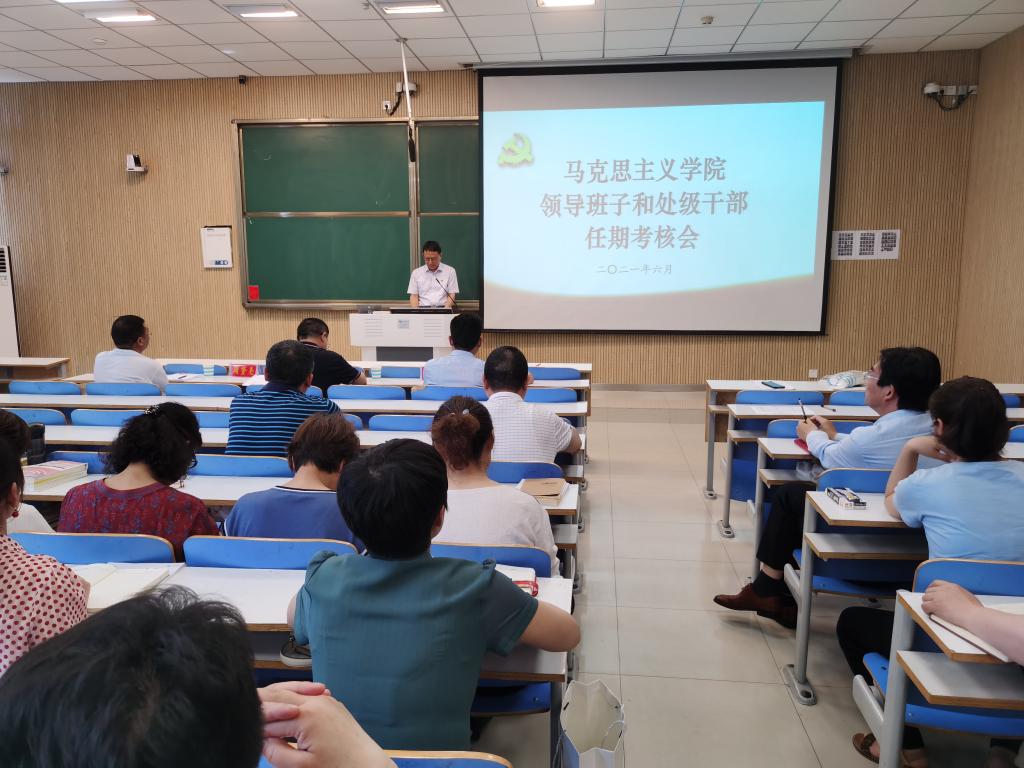 6月4日上午,beat365亚洲版官网处级领导班子和处级干部任期考核会议在社科楼515教室召开。校第二考核组组长、校党委委员、党委统战部部长曾伏虎,考核组成员、校纪委综合室副主任胡思辉,党委组织部干部科科长周贤亮和beat365官网50余名教职工参加会议,会议由学院党委书记唐国战主持。