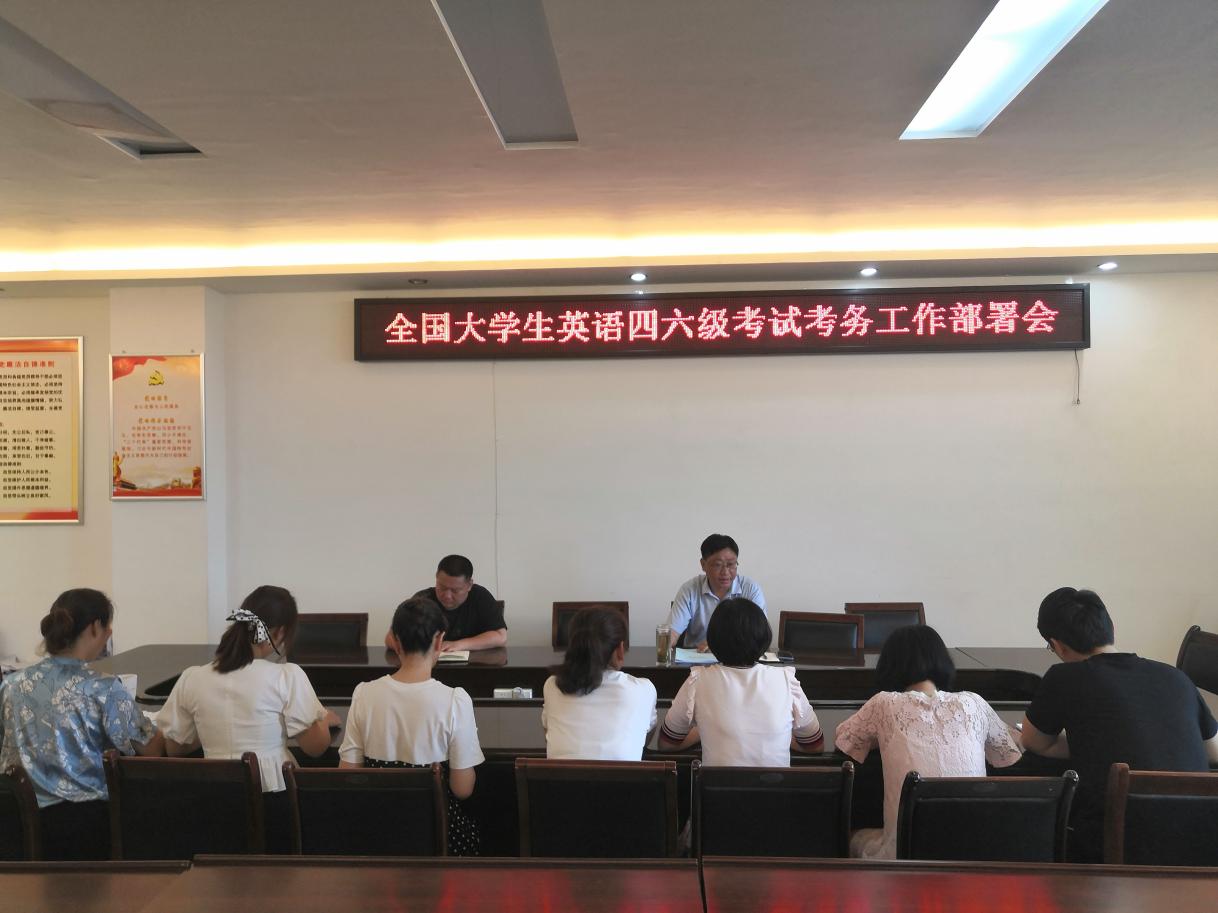 2021年6月8日上午,根据学校会议精神及下发的《全国大学英语四六级考试(CET)信阳师范学院考点考务工作手册》《河南省全国大学英语四六级考试监考须知》手册,beat365亚洲版官网积极组织召开其考务工作动员会。学院副院长程晋富、副书记何晓坚、教学秘书訾其伦、全体辅导员及部分监考教师出席会议,会议由程晋富主持。