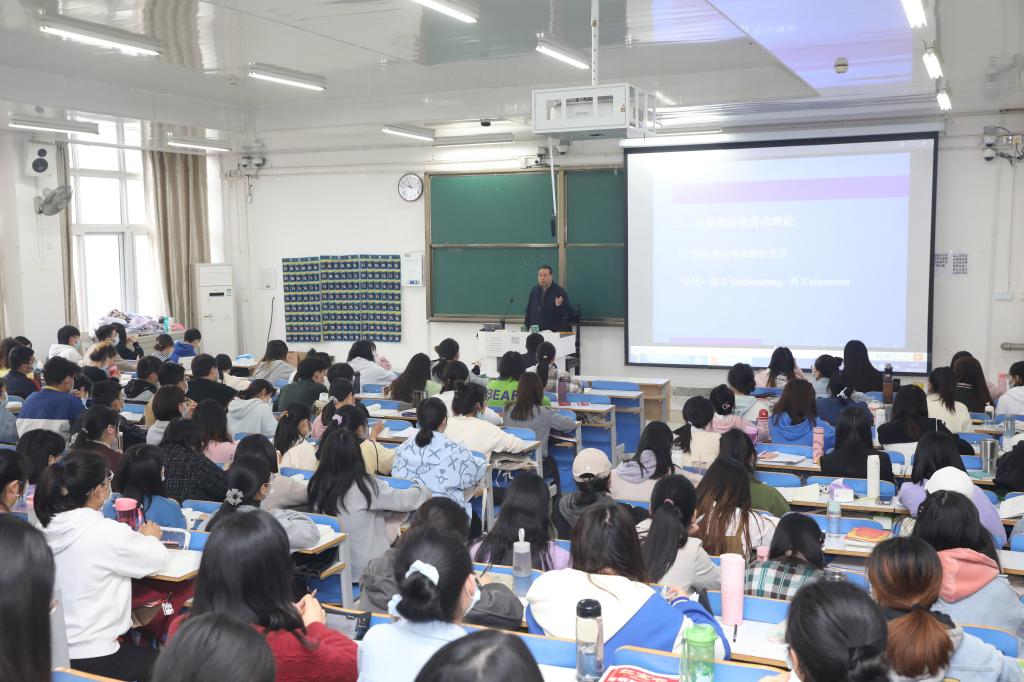 李俊一行到社科楼516教室随机听取了李春生教授主讲的《马克思主义经典著作导读》课程,课后还与和思政二班学生进行了亲切交流就教学内容、方法等进行探讨。