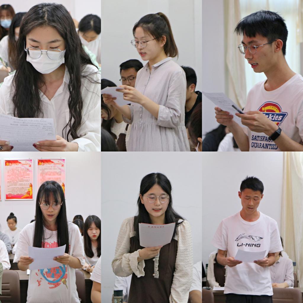 会上,学生党员、学生团干、普通团员代表结合五四青年节这一特殊节日和习近平总书记在中国人民大学的讲话纷纷进行发言。他们表示,青年学子要牢记习近平总书记的殷切嘱托,树立踔厉奋发、勇于前进的姿态,以实际行动践行“强国有我,请党放心”的铮铮誓言,在青春的赛道上跑出最好成绩。