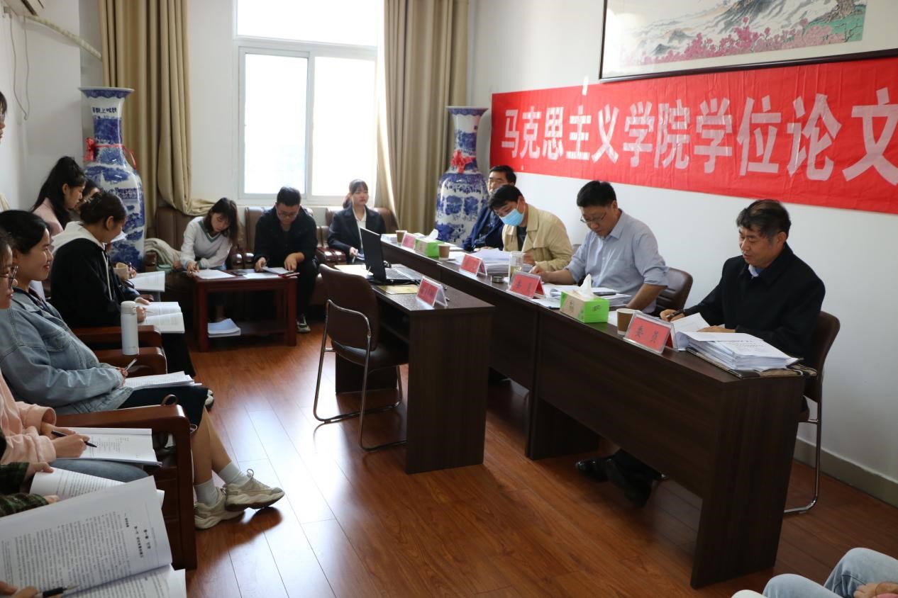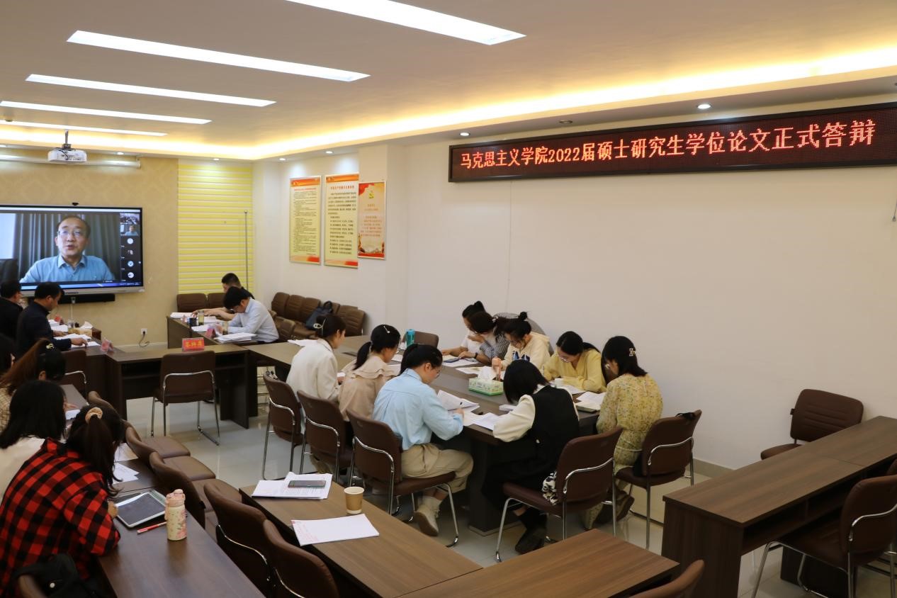 根据学院关于2022年硕士研究生毕业工作的总体安排,5月15日,beat365官网在社科楼323、320会议室顺利完成2022届49位硕士研究生学位论文正式答辩工作。本次答辩采用线上线下相结合的方式进行,2019级学术型研究生学位论文答辩工作邀请了河南科技大学beat365亚洲版官网院长刘振江担任答辩主席,唐国战、李蕊、门献敏、王帆宇担任答辩委员;2020级学科教学(思想政治教育)专业研究生学位论文共分3组进行,答辩一组邀请了河南理工大学beat365亚洲版官网院长郑小九担任答辩主席,周智、厉有国、杨国建(信阳高中)、黄玲丽、胡春湘担任答辩委员;答辩二组邀请了河南师范大学beat365亚洲版官网院长蒋占峰担任答辩主席,程晋富、王勇威(信阳高中)、李世书、王建礼担任答辩委员;答辩三组邀请了郑州航空工业管理学院beat365亚洲版官网院长汪青松担任答辩主席,朱四倍、陈勇(信阳市羊山中学)、常文涛、陈杰担任答辩委员。