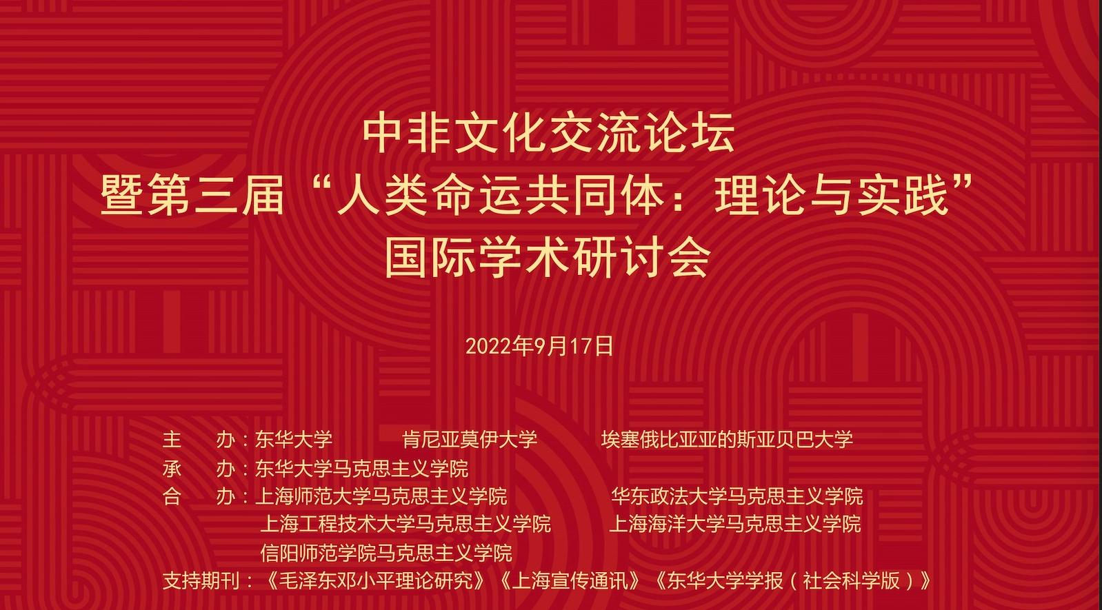 由我校beat365亚洲版官网与东华大学beat365亚洲版官网等单位共同举办的2022中非文化交流论坛暨第三届“人类命运共同体:理论与实践”国际学术研讨会于9月17日在线上成功举行。来自澳门城市大学、上海师范大学、华东政法大学、上海技术大学、信阳师范学院等高校和科研机构的专家学者,分别围绕各自的主题,在论坛上进行了分享交流。本次研讨会旨在通过搭建高水平的学术对话平台,汇聚海内外学者及各界人士共同探讨人类命运共同体的文明底色和发展前景,为构建人类命运共同体注入思想力量。