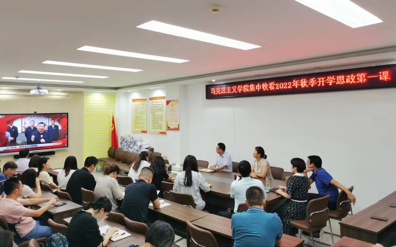 9月15日晚上,为深入贯彻习近平总书记关于“大思政课”建设的重要指示精神,由中共河南省宣传部、中共河南省委教育工委、河南省教育厅主办,河南农业大学和郑州大学承办的以“追寻足迹看我壮丽河山,牢记嘱托践行立德树人”为主题的2022年秋季开学思政第一课正式开讲。beat365亚洲版官网领导全体教师在社科楼323会议室进行了集中收看和学习研讨。