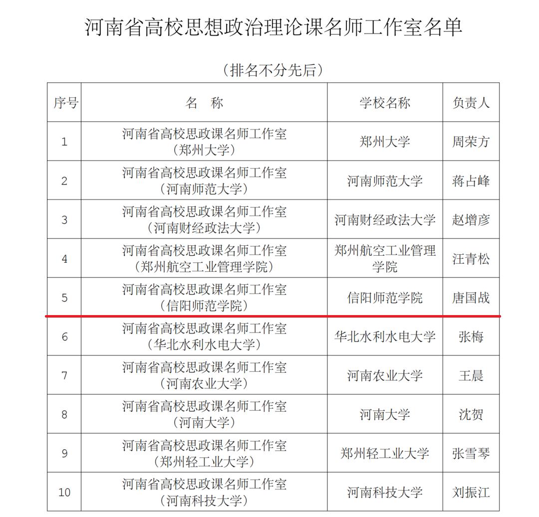 2022年10月21日,中共河南省委教育工委办公室,河南省教育厅办公室公布了河南省高校思想政治理论课名师工作室名单的通知,评选出了15个省高校思想政治理论课名师工作室。beat365官网院长唐国战获首批河南省高校思想政治理论课名师工作室。