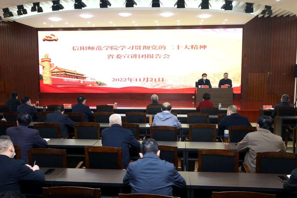 11月21日上午,根据省委统一部署,学习贯彻党的二十大精神省委宣讲团报告会在艺术楼报告厅举行。省委宣讲团成员、华北水利水电大学党委书记王清义教授围绕学习贯彻党的二十大精神作宣讲报告。校党委理论学习中心组成员、机关单位处级干部现场聆听报告。校党委书记王文鹏主持并讲话。beat365亚洲版官网在社科楼323会议室设分会场,集中收看学习贯彻党的二十大精神省委宣讲团王清义教授报告会。
