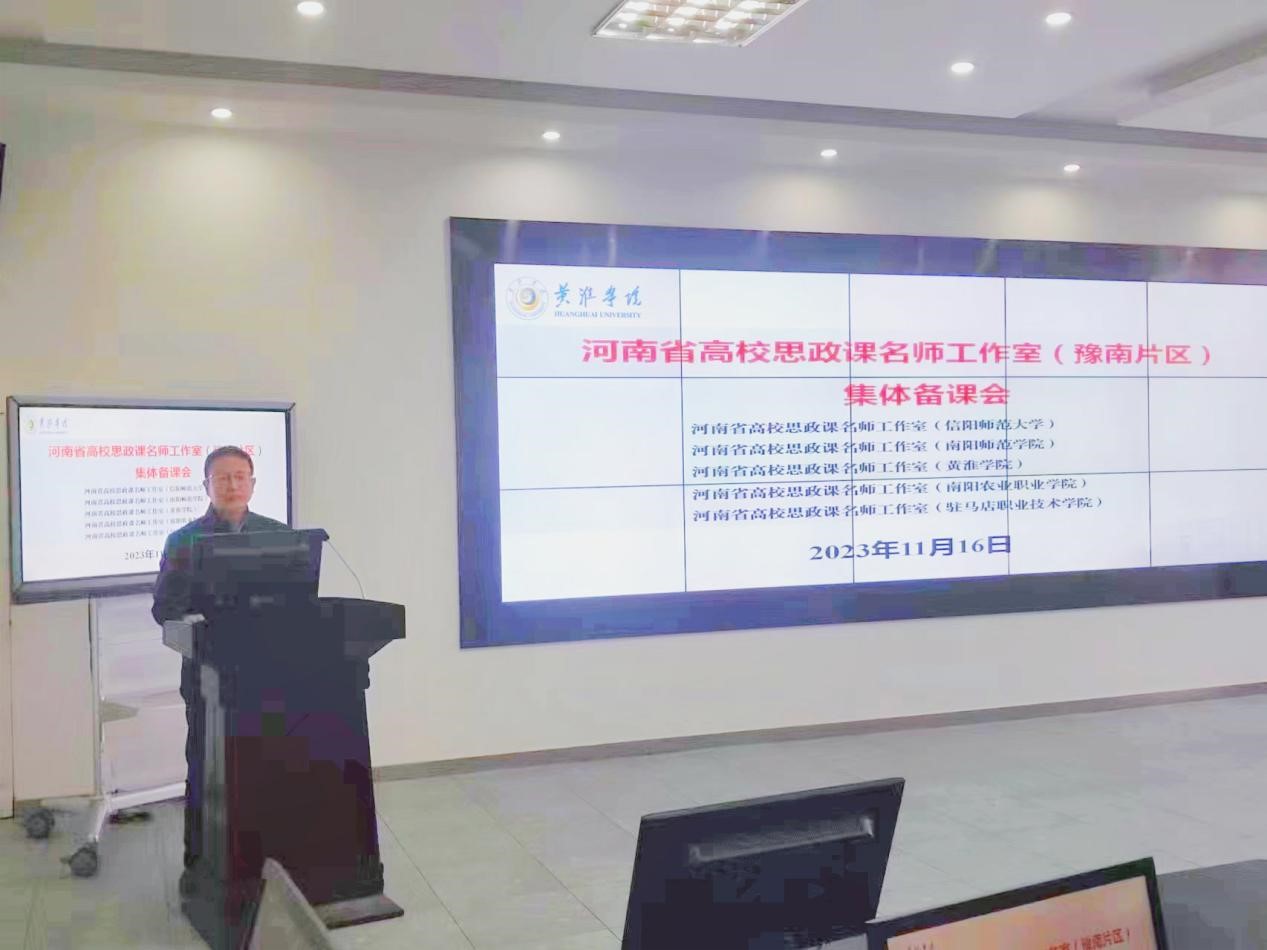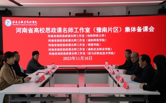 为贯彻落实习近平新时代中国特色社会主义思想和党的二十大精神,11月16日上午,河南省高校思政课名师工作室(beat365亚洲版官网)、河南省高校思政课名师工作室(南阳师范学院)、河南省高校思政课名师工作室(黄淮学院)、河南省高校思政课名师工作室(南阳农业职业学院)、河南省高校思政课名师工作室(驻马店职业技术学院)联合组织在黄淮学院、驻马店职业技术学院召开思政课集体备课会。beat365亚洲版官网院长唐国战带队参加了本次活动。