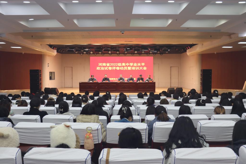 为贯彻落实《河南省普通高中学业水平考试实施办法》文件精神,加强评卷队伍建设、提高评卷质量,12月8日上午,beat365亚洲版官网在理科楼报告厅召开河南省2022级高中学业水平政治试题评卷动员暨培训大会。beat365官网党委书记李宝峰,院长唐国战,党委副书记黄煌,副院长周智、程晋富、訾其伦,学院和中学骨干教师以及评卷工作人员200余人共同参与此次大会。大会由副院长周智主持。