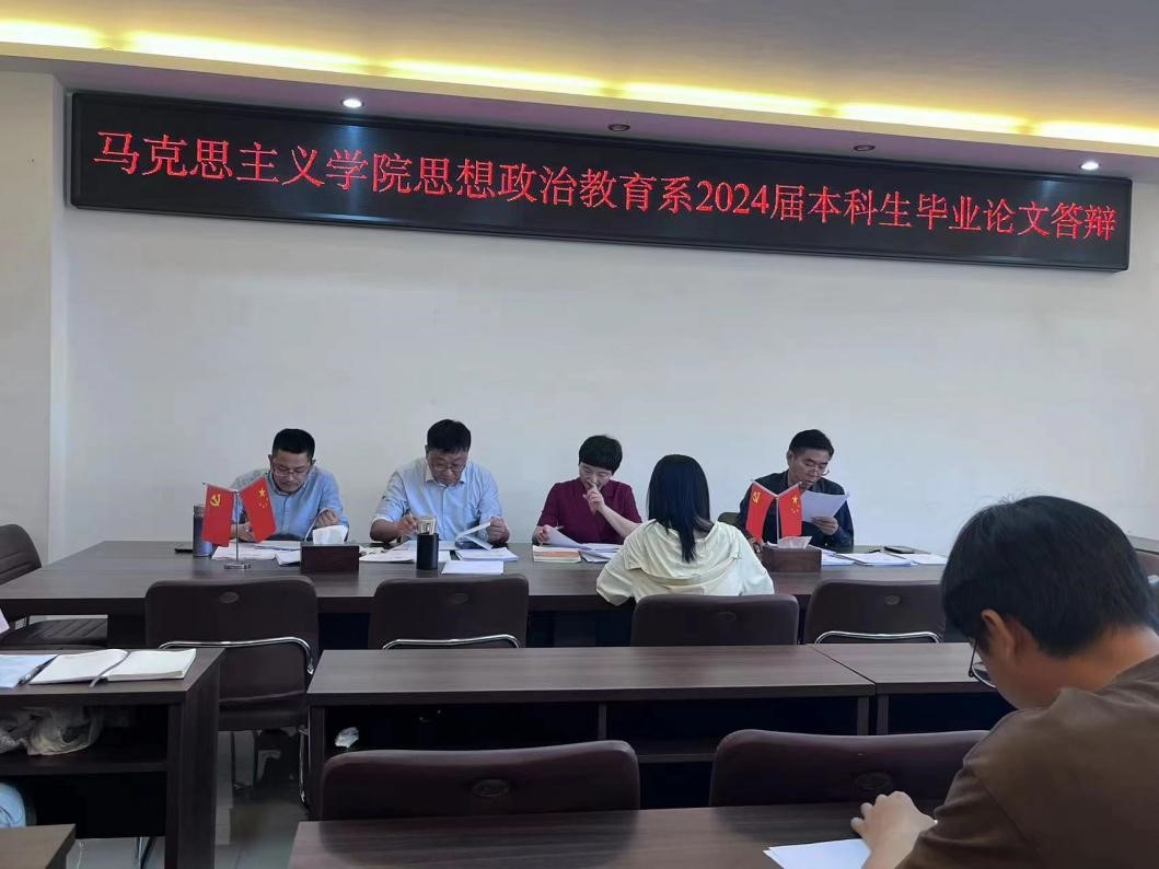 根据教务处《关于做好2024届本科毕业论文(设计)有关工作的通知》及《beat365亚洲版官网关于2024届思想政治教育专业本科毕业论文答辩工作的通知》要求,beat365官网思想政治教育系于2024年5月11日下午在社科楼323会议室进行2024届本科生毕业论文答辩会,答辩组由程晋富、李蕊、王建礼和蔡如军等老师组成,王建礼任答辩组组长,20名同学参加答辩。