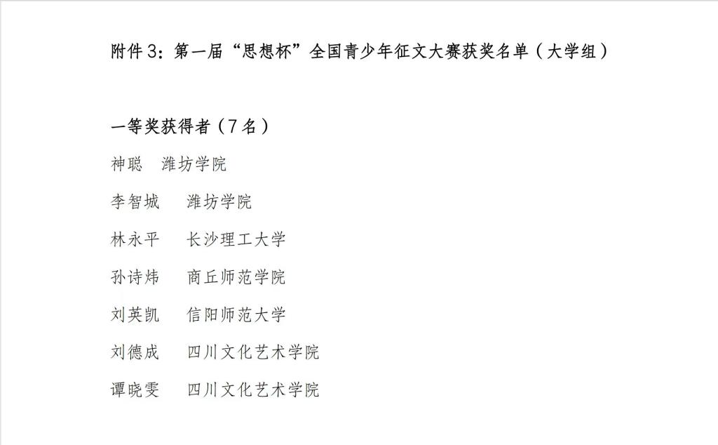 据了解,第一届“思想杯”全国青少年征文大赛由河南省青少年作家协会发起,旨在挖掘和传承中华优秀传统文化,培养青少年的历史文化素养和文学创作能力,同时为优秀文学人才培养和选拔搭建平台。大赛共收到参赛作品 2180 篇,评选出 1411 篇优秀作品,并决出了各奖项归属。(beat365亚洲版官网 贾傲雪 薛蒙蒙/供稿 王超 陶青青/审核)