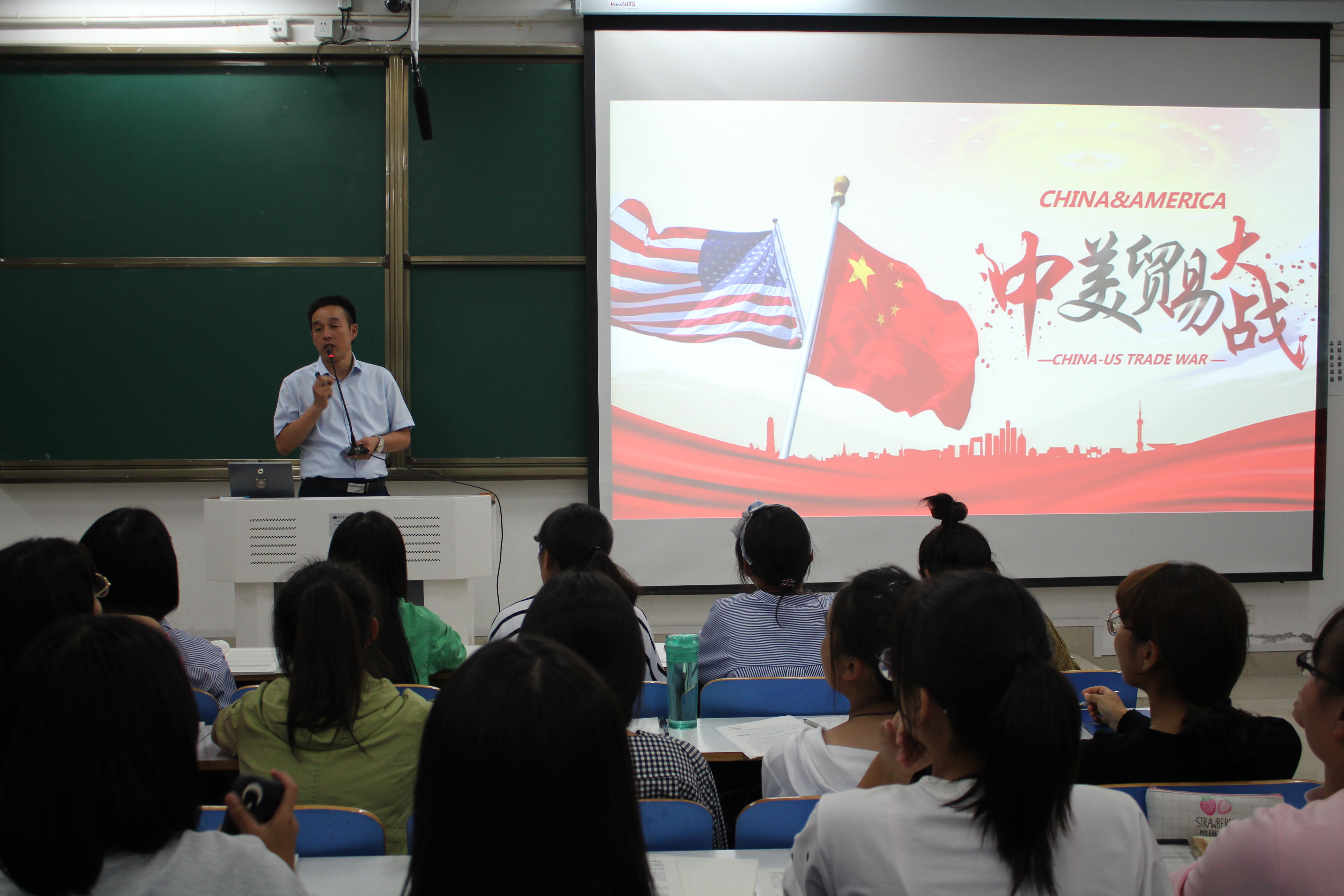 为贯彻落实教社科〔2018〕1号文件,帮助beat365官网学子正确认识新时代国内外形势,深刻领会党的十八大以来党和国家事业取得的历史性成就、发生的历史性变革、面临的历史性机遇和挑战,9月28日、9月29日晚,beat365官网王帆宇副教授在社科楼514、516教室为beat365官网全体学生讲授了题为“中美贸易大战”的形势与政策课。
