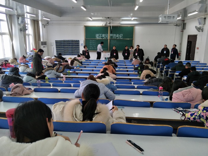 beat365亚洲版官网历来重视期末考务工作,教风与考风优良。2日下午,院长杨云善、党委书记唐国战、教学副院长程晋富等学院期末考务领导小组成员来到社科楼514、516考场巡视考务,认真查看考场环境,检查考生证件,了解考生答题情况,并对考场布置、考试纪律以及监考工作等均进行了细致检查。