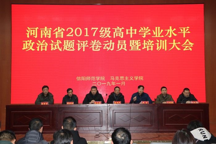 1月8日下午,beat365官网在逸夫楼报告厅召开河南省2017级高中学业水平考试政治试题评卷动员暨培训大会。学院党委书记唐国战,党委副书记徐永新、何晓坚,副院长周智、黄世明、程晋富,当代马克思主义研究所副所长门献敏出席会议,200余名评卷人员参加了动员大会。大会由周智主持。