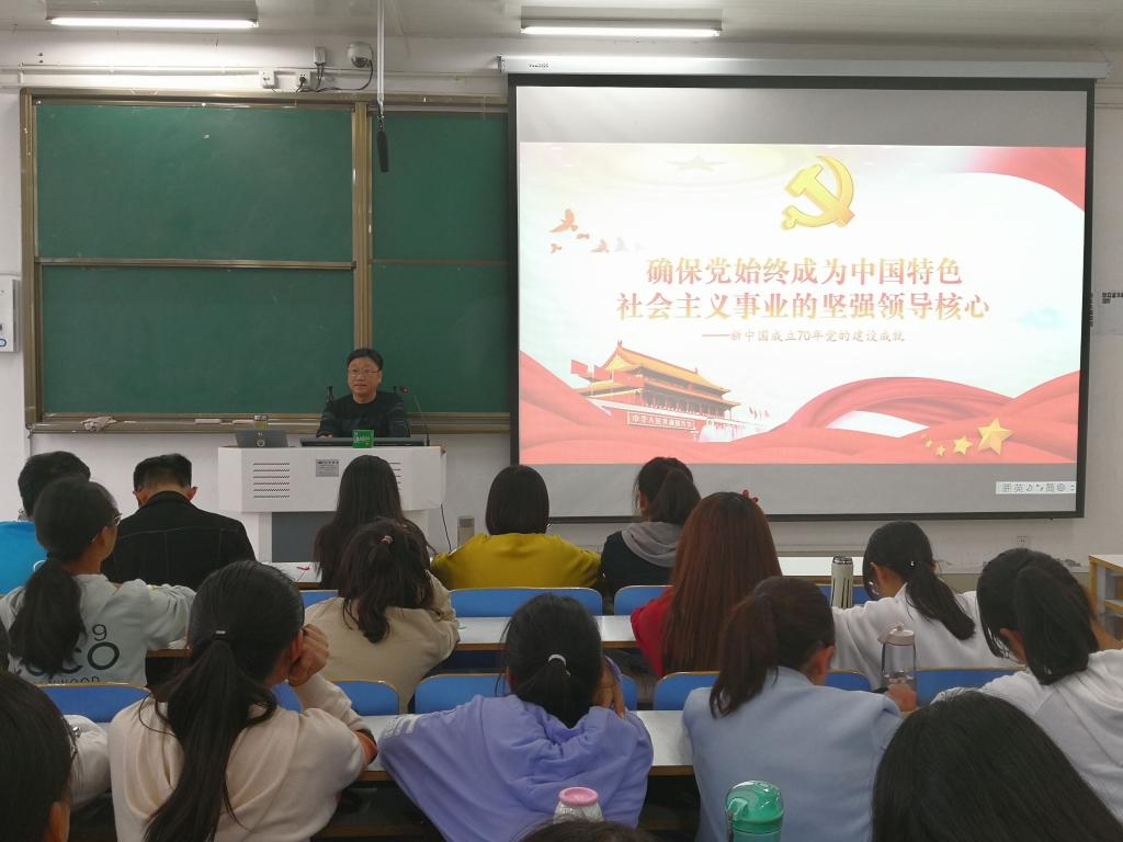 10月22日下午,beat365亚洲版官网副院长程晋富、党委副书记何晓坚在社科楼514、516教室为beat365官网学子讲授题“确保党始终成为中国特色社会主义事业的坚强领导核心”的形势与政策课。beat365官网全体学生共同聆听本次课程。