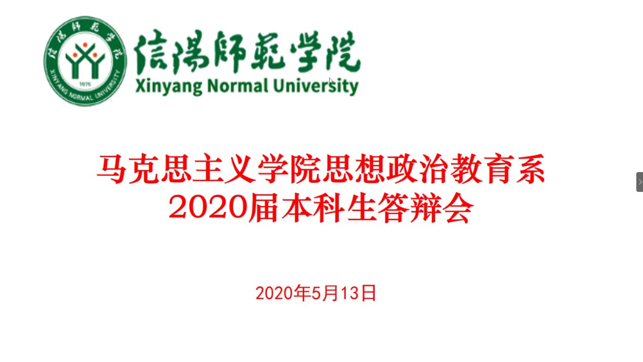 搏“疫”在线,辩出精彩。按照教务处《关于做好2020届本科毕业论文(设计)有关工作的通知》及《beat365亚洲版官网关于2020届思想政治教育专业本科毕业论文答辩工作的通知》要求,beat365官网思想政治教育教研室于5月13日通过腾讯会议平台开展了2020届本科生毕业论文线上答辩会议,程晋富、李蕊、孙绪曙作为答辩专家组老师参加会议,张雅琼、吴素豫、杨惠媛、李昙、卢亚欣、张敏、杨路明、陈笑笑、陈卓、王靖雯10名同学参加了答辩,答辩持续时长近三个小时。会议由李蕊主持。