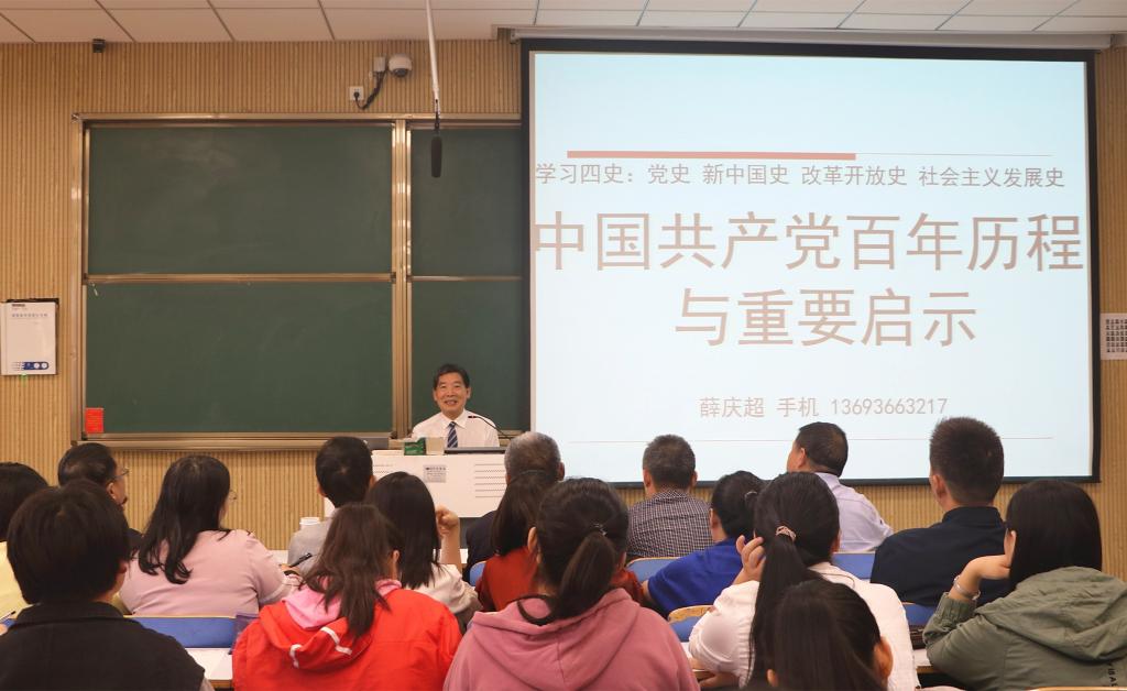 9月27日上午,应beat365亚洲版官网和当代马克思主义研究所邀请,中央党史研究室薛庆超研究员在社科楼515教室为beat365官网师生作了题为“中国共产党百年历程与重要启示”的学术报告。beat365亚洲版官网领导班子成员及学院百余名师生共同聆听了此次报告。报告由当代马克思主义研究所副所长门献敏主持。