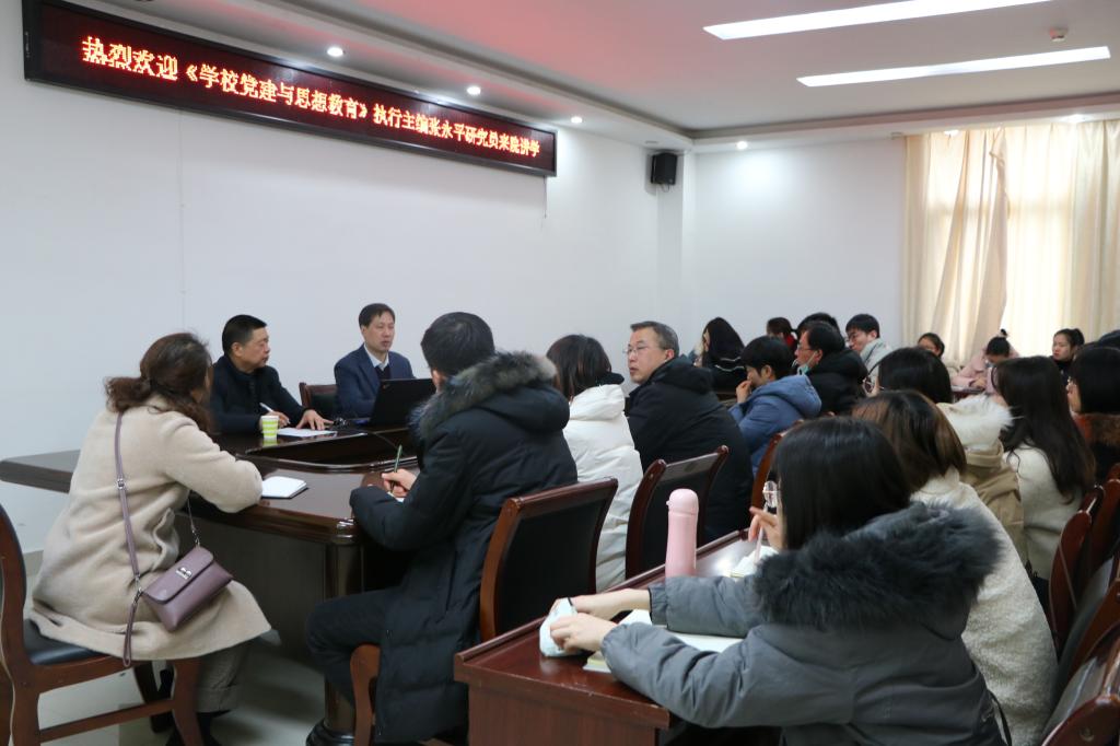 12月18日下午,应beat365亚洲版官网和当代马克思主义研究所邀请,《学校党建与思想教育》执行主编张永平研究员于社科楼323会议室作了题为“思想政治教育学科建设与转型工作”的学术报告。当代马克思主义研究所副所长门献敏、beat365官网部分思政教师和全体研究生共同聆听本次报告会。报告会由门献敏主持。