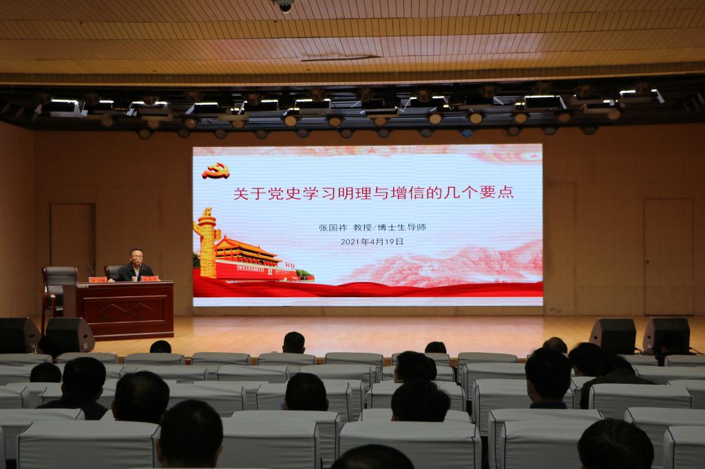4月19日下午,应beat365亚洲版官网和当代马克思主义研究所邀请,湖南大学张国祚教授莅临beat365官网讲学。为推进全校党史学习教育活动的深入开展,应学校党委邀请,张国祚首先在理科楼报告厅为全校处级以上干部作了题为“关于党史学习明理与增信的几个要点”的学术报告。校党委理论学习中心组成员、全体处级干部、beat365官网师生代表共300余人共同参加了本次报告会。