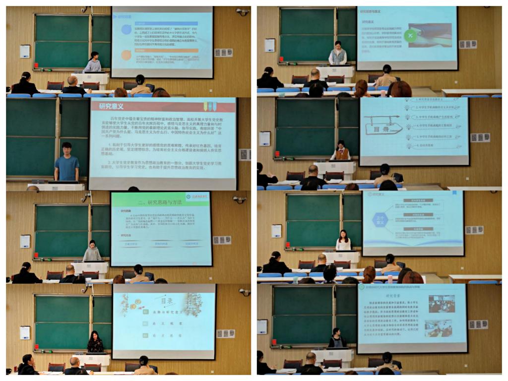 会议伊始,组长厉有国介绍了本次答辩流程,强调答辩的目的重在提升同学们毕业论文质量。然后,每位同学围绕论文的选题背景及意义、写作思路及方法、论文结构、论文的亮点和不足等方面进行PPT汇报展示。接着,各位老师分别从论文题目、论文逻辑结构、包括论文封面、目录、脚注、参考文献在内的论文格式等方面指出每位同学论文中存在的问题,并提出具体的修改意见。同时,答辩老师就学生论文内容进行提问,并进一步启发学生对论文有更多的思考。最后,组长厉有国对所有同学论文中存在的共性问题进一步说明,并希望每位同学针对论文中的问题逐个修正,以及填写好答辩记录表,努力提高论文质量。
