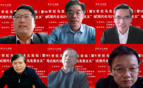 21世纪马克思主义研究会会长、中共中央党校(国家行政学院)教授韩庆祥,信阳师范学院校长李俊,来自中共中央党校(国家行政学院)、清华大学、武汉大学、浙江大学、山东师范大学、华南师范大学、华中师范大学、南京师范大学、郑州大学及《哲学研究》《马克思主义研究》编辑部等高校、科研院所、杂志社的专家学者、师生代表近千人齐聚云端,围绕论坛主题展开学术交流。信阳师范学院beat365亚洲版官网院长唐国战主持会议开幕式,副院长李蕊主持闭幕式。