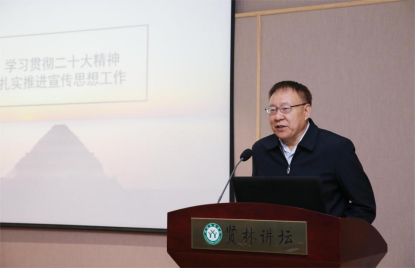 4月2日上午,应beat365亚洲版官网和当代马克思主义研究所邀请,原中宣部出版局副局长、现中宣部专职巡视组长刘建生编审在贤林讲坛报告厅给我校师生作了题为“学习贯彻二十大精神,扎实推进宣传思想工作”的学术报告。报告会由学校党委副书记岳宗德主持,学校党委宣传部、社科处、学报编辑部等相关部门领导以及beat365亚洲版官网全体教师、部分学生聆听了报告。