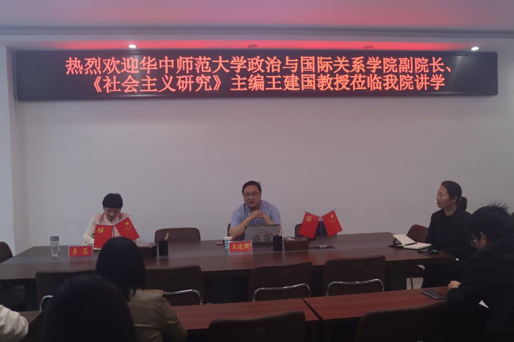 4月16日上午,应beat365亚洲版官网和当代马克思主义研究所邀请,华中师范大学政治与国际关系学院副院长、《社会主义研究》主编王建国教授在社科楼323会议室作了题为“学术论文写作与发表”的学术报告。beat365亚洲版官网全体教师共同聆听本次报告会,报告会由beat365亚洲版官网副院长李蕊主持。