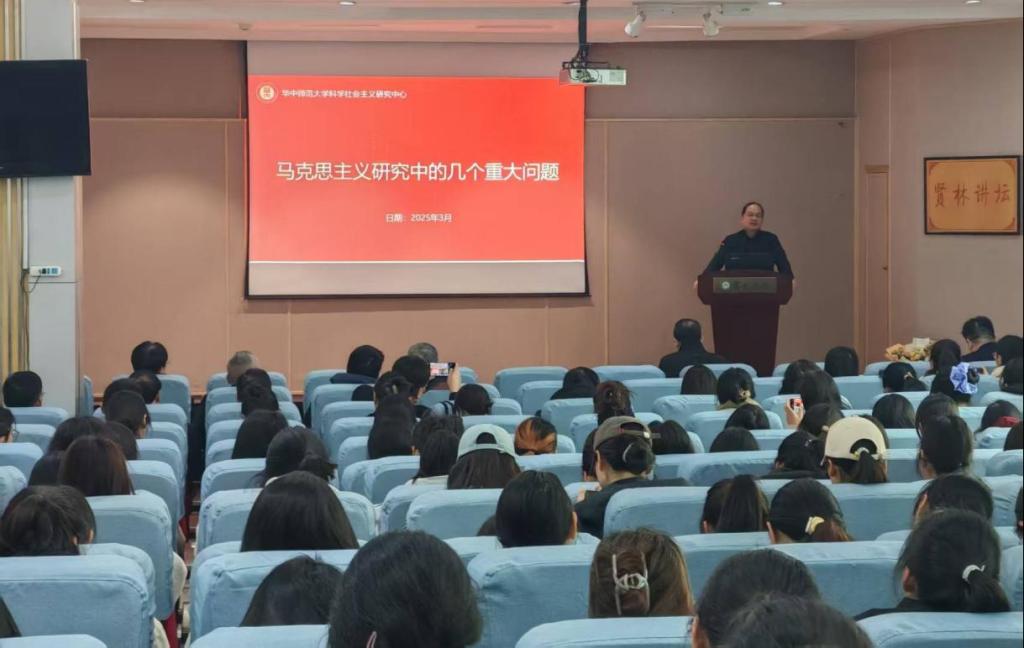 牟成文教授围绕马克思主义研究领域中几个关键问题展开讲解。首先,他以马克思主义的三大组成部分为出发点,科学阐释马克思主义哲学、马克思主义政治经济学、科学社会主义三者之间的关系。其次,牟成文教授深入剖析经典著作,结合时代背景与现实发展,对马克思主义的法哲学、马克思主义的群众观、科学社会主义与马克思主义之间的关系进行了系统性阐释,为同学们厘清了马克思主义研究中的诸多重点与难点问题。最后,在互动环节中,牟教授与同学们积极互动,就马克思主义的群众观与马克思主义生产力理论之间的关系等问题进行深入探讨交流,引导同学们深化对马克思主义理论的理解。