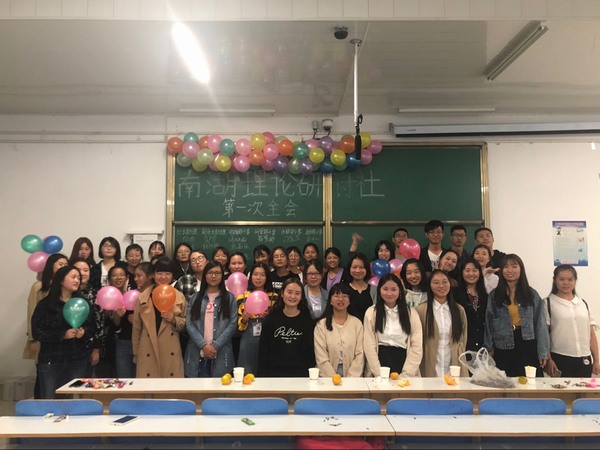 大会伊始,社团指导老师高国栋老师,曹栋老师致辞,为社团成员讲述了社团的主要部门、基本职责以及对全体社员提出希望建议。随后学生会主席史弘扬表达了自己对社团的看法和美好祝愿。社长张静向广大新社员介绍了社团优秀的历史传统、品牌活动以及取得的成绩,希望新社员积极参与社团活动,献计献策为社团的美好贡献新的力量。在聆听完老师和学长学姐的讲话之后,又举行了简短的文艺表演。之后,社长、团支书以及各部部长分别简单介绍了各部主要工作及招收新名额。社团新成员踊跃上台发表竞选演说,积极竞争自己心仪的部门职位。最后,我们以一张充满和谐、幸福、青春的全家福结束了本次全会。