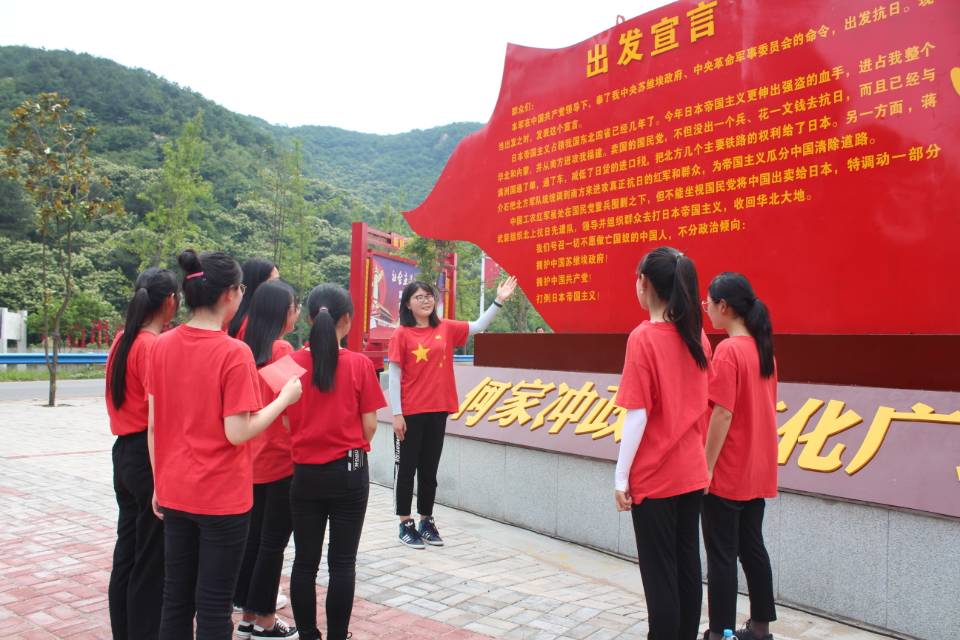 上午,大家首先前往罗山县何家冲烈士陵园祭奠缅怀革命先烈,感受革命英雄主义情怀,接受爱国主义洗礼。在解说员的带领下,同学们进入革命烈士纪念馆和何氏祠参观学习,深入了解中国工农红军第二十五军长征革命事迹,感悟长征革命烈士的艰苦,激发同学们强烈的爱国主义情怀。接着,“青马”工程全体成员在何氏祠前集体诵读《中国工农红军誓词》,表达出为国家复兴作出贡献的坚定决心。下午,大家重走长征路,体验中国工农红军第二十五军长征路途的艰辛与不易,领悟革命先烈乐于吃苦,不惧艰难的长征精神。最后,“青马”工程学员第四小组在何家冲政治文化广场开展红色景区讲解的特色实践活动。通过讲与学相结合的方式,向大家宣讲了中国工农红军第二十五军长征出发宣言及何氏祠相关革命史知识。整个特色实践活动过程主旨鲜明、学习氛围浓烈,同学们均受益匪浅。