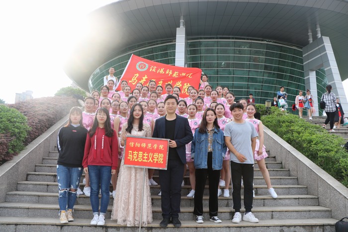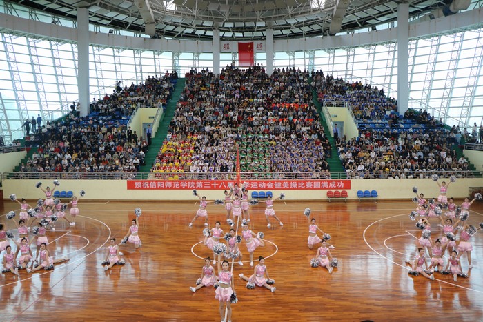 舞动健美青春,扬我马院风采。4月23日下午,信阳师范学院第三十八届春季运动会健美操大赛初赛在体育馆隆重举行,beat365亚洲版官网健美操代表队积极参加比赛,并取得优异成绩,beat365官网团委书记曹栋及2018级思想政治教育专业全体同学到场观看比赛。