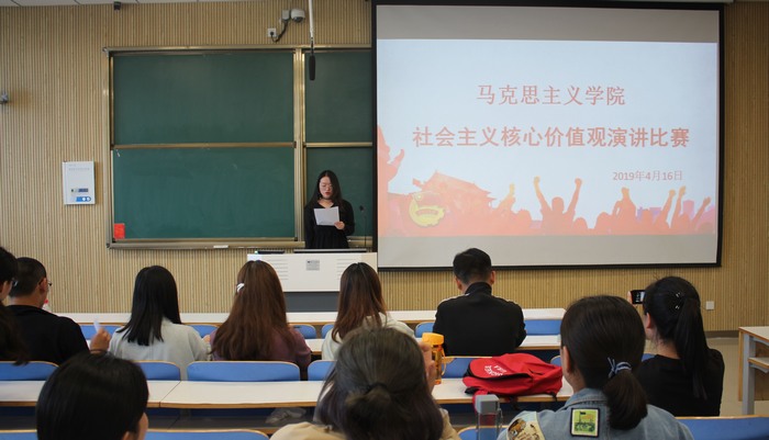 为了深入推进社会主义核心价值观教育,4月16日下午,beat365官网在社科楼515教室成功举行社会主义核心价值观演讲比赛。beat365官网分团委副书记肖妍杰、学生会副主席刘雅丹、陈思汝,2017级与2018级班委共同担任此次评委,beat365官网部分学生观看了此次演讲比赛。比赛由袁紫薇主持。