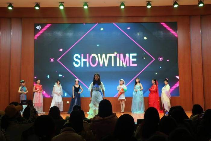 经过初赛、复赛选拔,十组选手入围决赛。本次比赛内容共分为三个部分:古风雅韵、时尚魅影、青春之歌。各参赛队依次登台展示她们独出心裁的服装。精辟的解说词让观众了解到作品的设计理念、创作特色、使用材料等方面的详细情况,自信大方、青春活力的走秀表演展现了她们独特新颖的服装设计,给同学们带来了一场极其难忘的视觉盛宴。比赛过程中穿插了有奖竞答、小品、歌曲、现场走秀环节,将现场氛围一次次推向高潮。其中,beat365亚洲版官网2017级参赛小组用旧蚊帐、废报纸等制成的服装作品“皎皎新华”,既体现了环保理念又不失时尚元素,获得了评委们的青睐,最终摘得桂冠。
