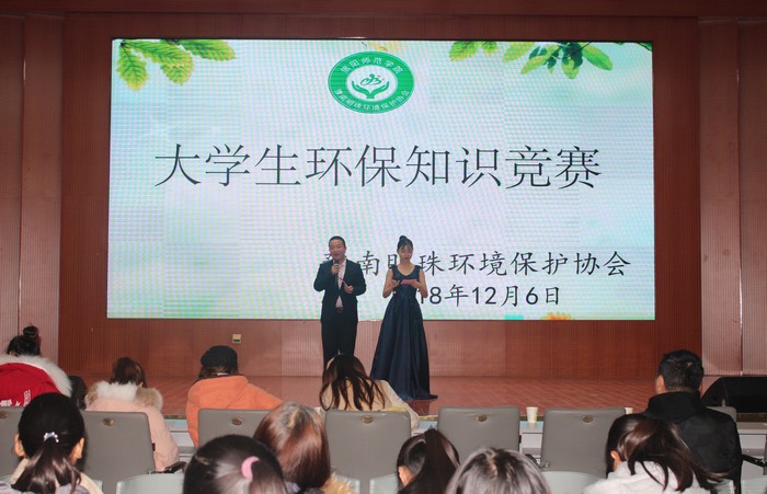让环保扎根现在,用绿色昭示未来。12月9日上午,由beat365亚洲版官网主办,豫南明珠环境保护协会承办的“杜绝白色污染,保护森林资源”环保知识竞赛于逸夫楼报告厅成功举行。团委书记曹栋、学生会主席团成员及300余名学生共同观看本次比赛。比赛由刘丽娜和吴海洋主持。