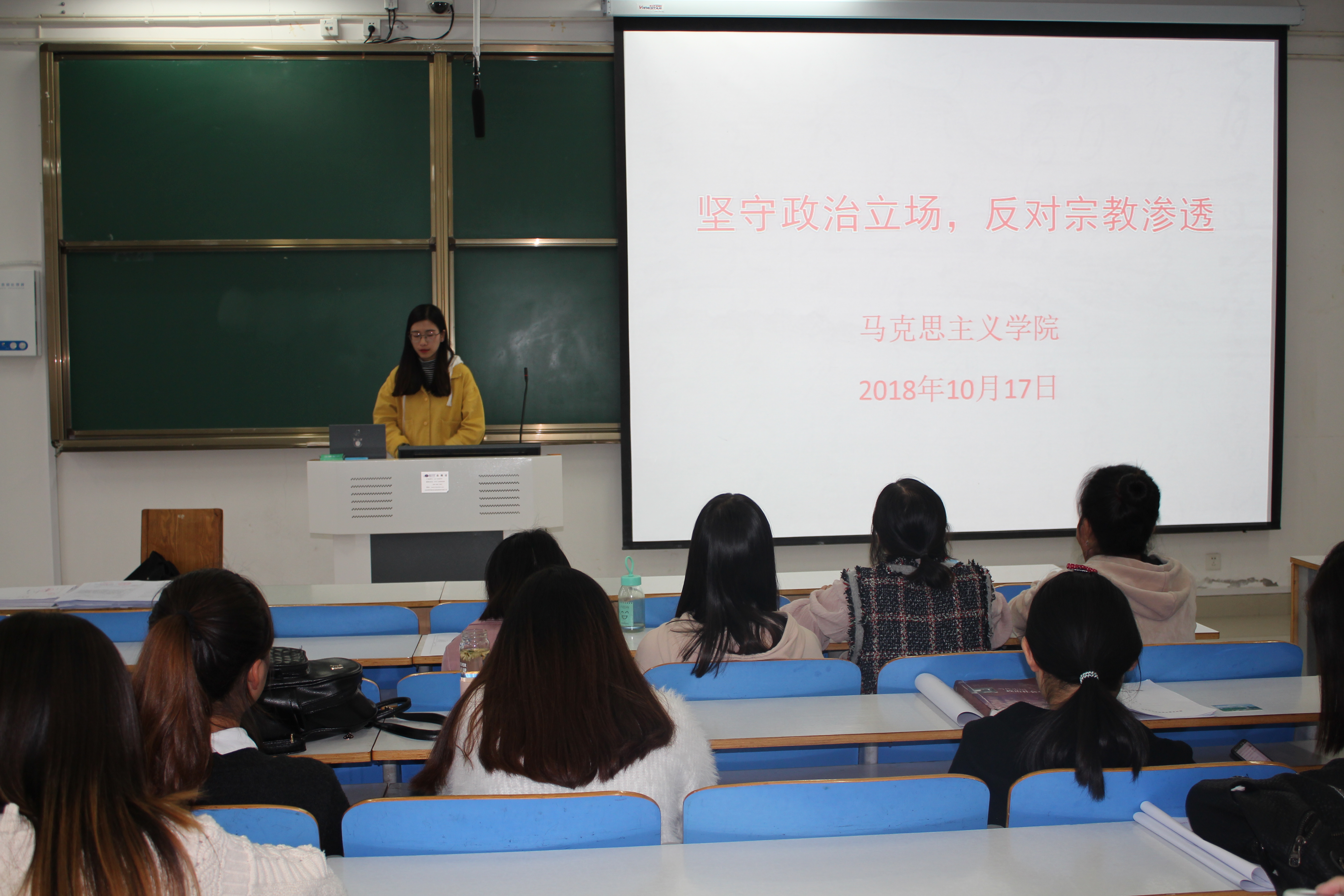 为防止宗教渗透,牢固beat365官网学子正确政治立场,beat365亚洲版官网2015级思想政治教育专业一班、二班在社科楼516教室召开 “坚守政治立场,反对宗教渗透”主题班会。团委书记曹栋与beat365官网2015级思想政治教育专业全体学生共同参与班次本次班会。班会由学生辅导员张英主持。