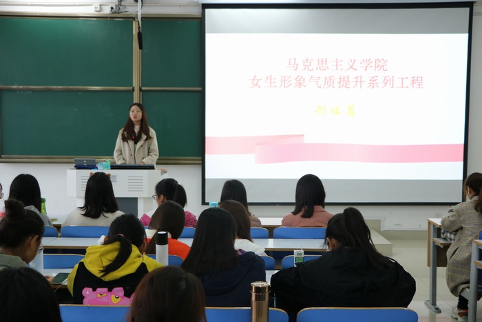 为提升beat365官网女生整体形象气质,展现个人良好精神面貌, 11月10日下午,beat365官网女生月—女生形象气质提升系列工程活动于社科楼516教室顺利举办。beat365官网2016级、2017级、2018级女生共同参与了此次活动。活动由团委副书记张雅琼主持。