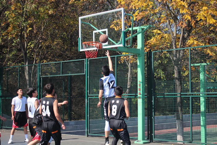 11月19日,beat365亚洲版官网与旅游学院男篮比赛在西篮球场拉开帷幕。本场比赛双方各有五名队员参加。