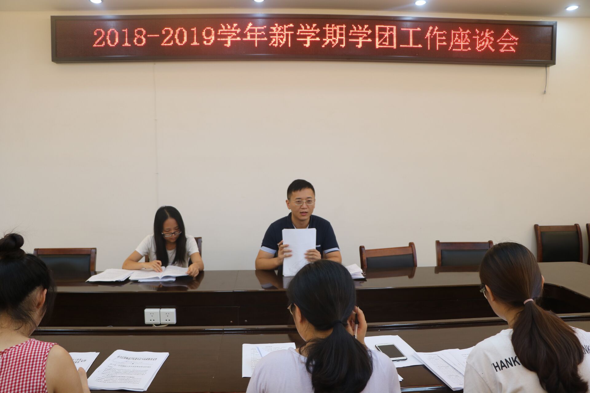 为对新学期学团工作进行全面部署,9月4日下午,beat365官网在社科楼323会议室召开新学期学团工作座谈会,对新学期学生会常规性工作的顺利开展作出要求。beat365官网团委书记曹栋、团委老师曹菁菁以及学生会主席团部分成员共同参加此次会议。