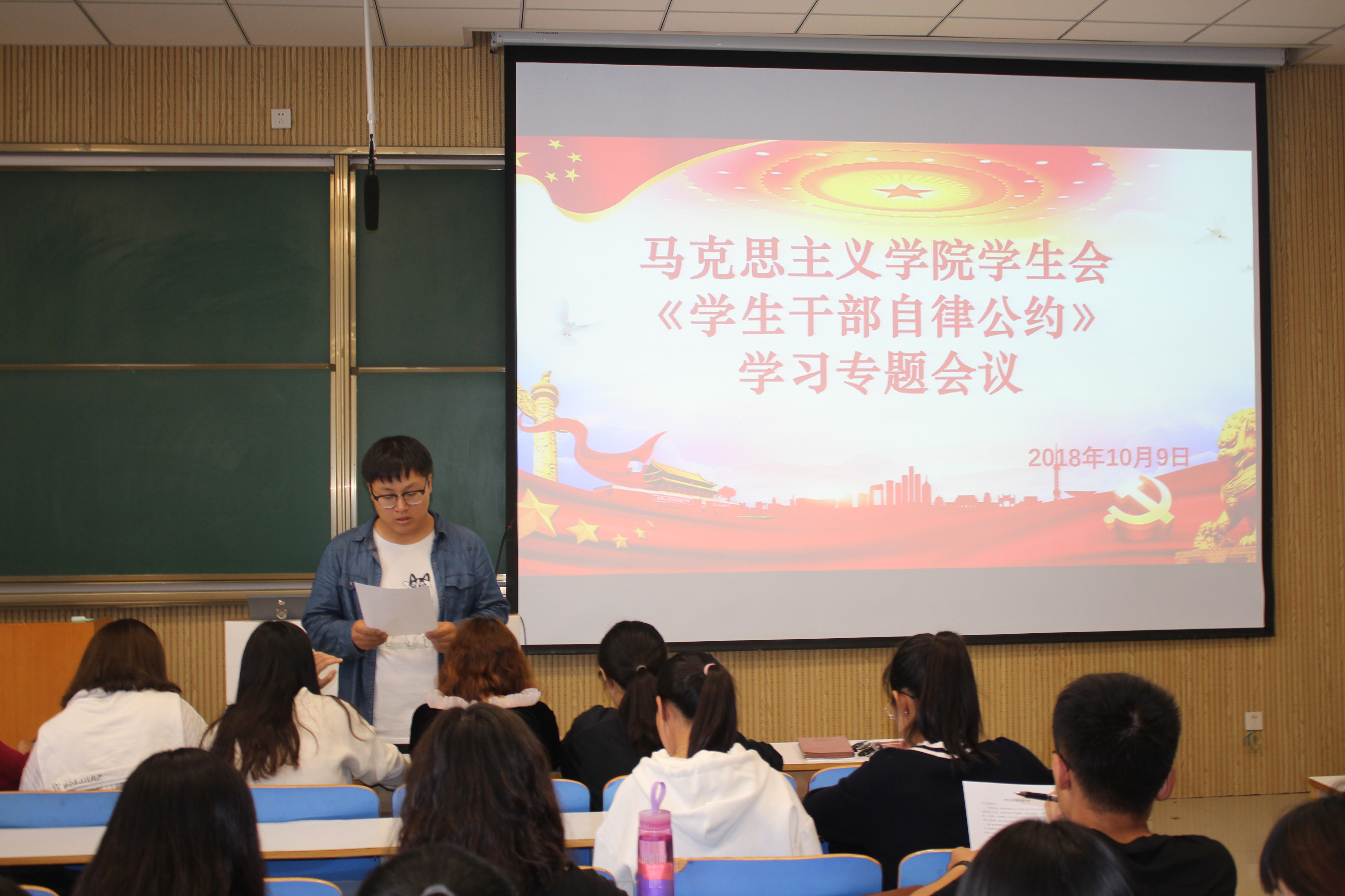 为建设一支胸怀理想、心系同学、品学兼优、作风扎实的学生骨干队伍,10月9日上午,beat365官网在社科楼515教室举行beat365亚洲版官网《学生干部自律公约》学习专题会议。beat365官网学生会主席团,学生会各部门、社团及各班级负责人共同参加此次会议。本次会议由学生会主席史弘扬主持。