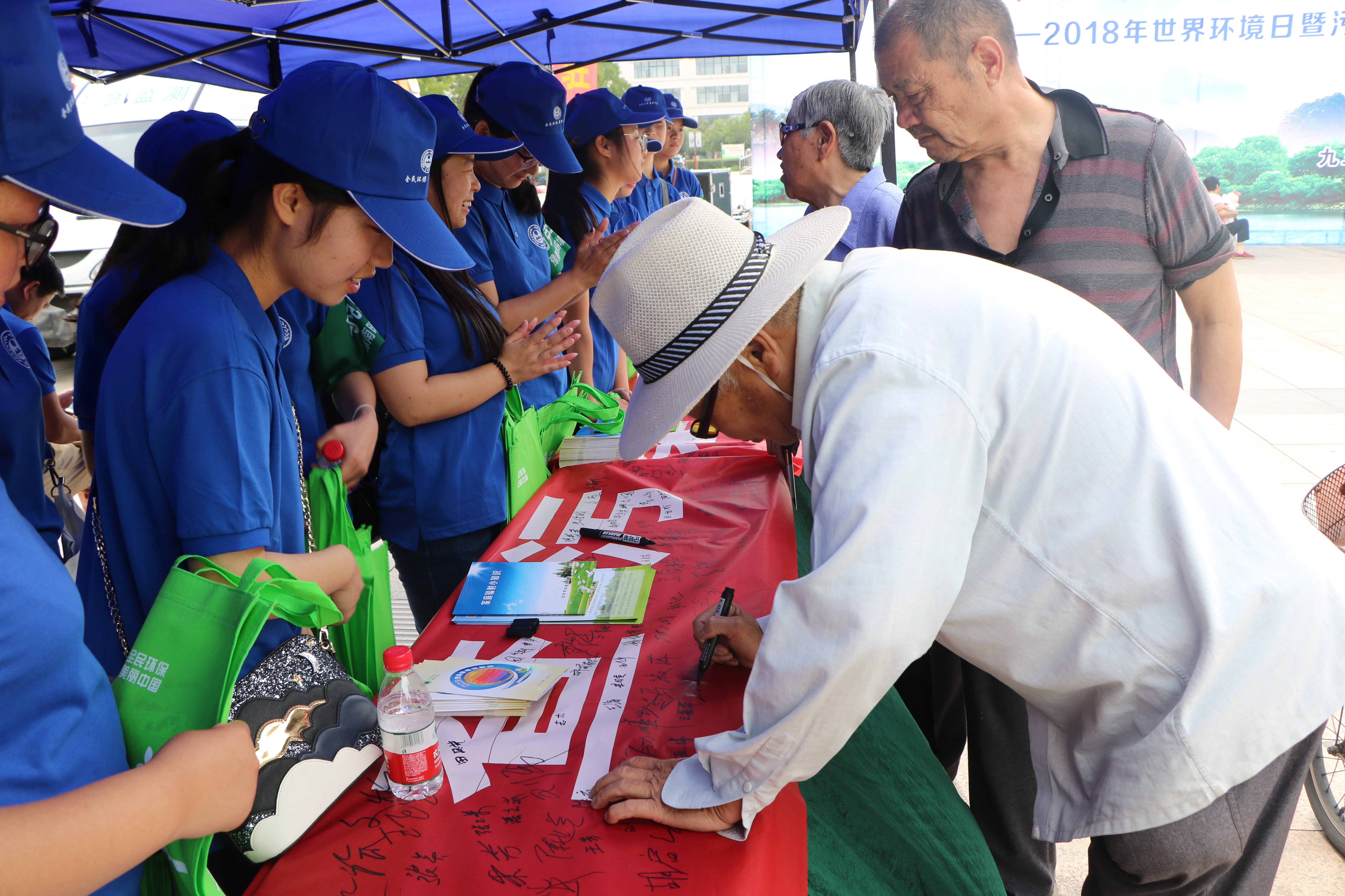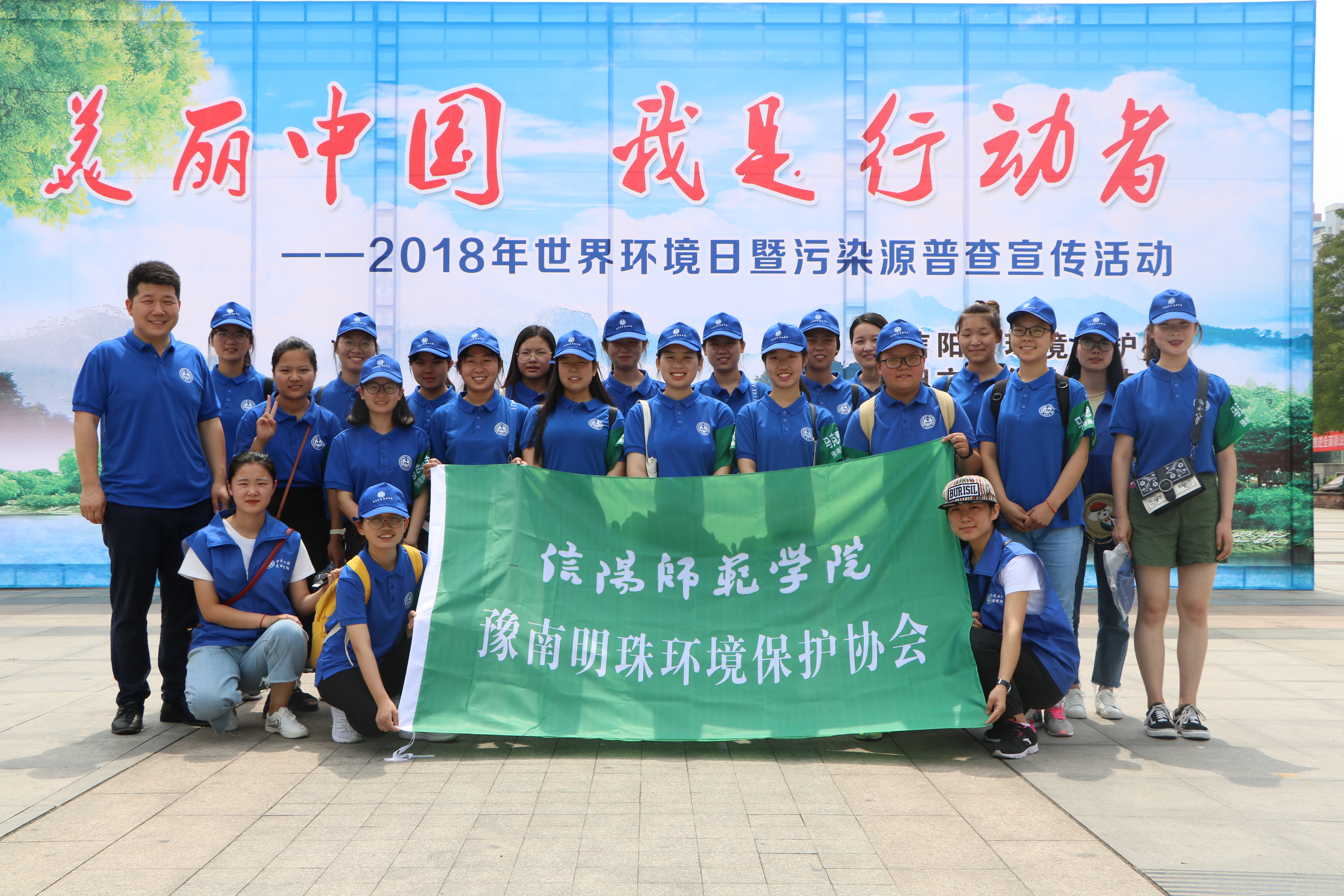 为进一步推进生态文明建设相关宣传工作,形成全社会共同支持和关注生态保护的强大合力,6月5日,由信阳市环保局、信阳市中级人民法院、农工党信阳市委办公室和九三学社信阳市委办公室联合举办的“美丽中国,我是行动者”2018年第47个世界环境日暨污染源普查宣传活动在信阳市体彩广场举行。beat365官网豫南明珠环境保护协会30名志愿者共同参加此次活动。