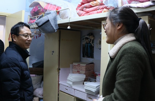 唐国战一行先后走访了beat365官网学生所在的1号、4号宿舍楼。在走访过程中,唐国战亲自核实宿舍人员到校情况,并与学生展开亲切的交流。他对同学们的寒假生活状况以及寒假调研内容进行了仔细询问,并叮嘱大家注意天气变化、用电安全,为新学期上课做好准备。领导老师们悉心询问了同学们在学习、生活方面的困惑,同时也给出自己的建议。同学们听后纷纷表示获益匪浅,收获良多。