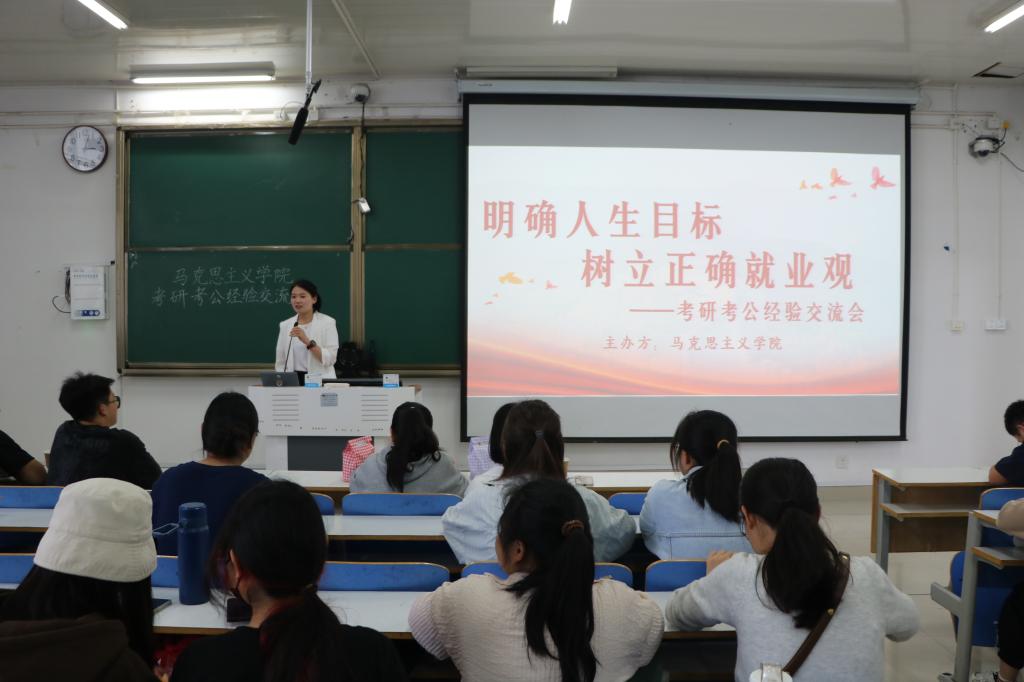 5月26日下午,beat365亚洲版官网在社科楼514教室举办考研考公经验交流会。beat365亚洲版官网团委书记陶青青、优秀考研考公学生代表以及数百名学生共同参加本次交流会。会议由学生会执行主席闫梦辉主持。
