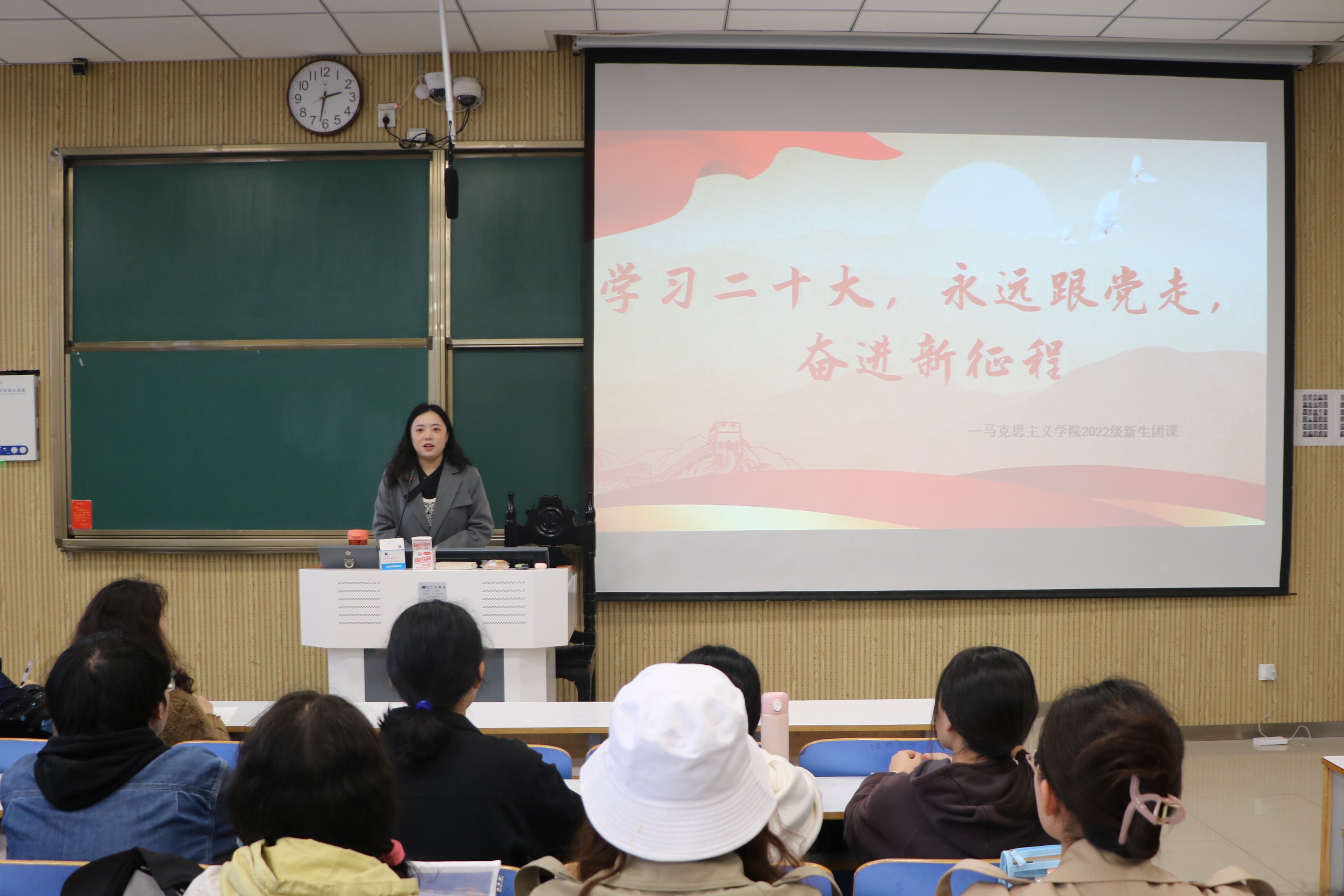 为进一步学习贯彻党的二十大精神,提高思政学子思想理论水平和政治素养,11月3日下午,beat365亚洲版官网在社科楼515教室开展以“学习二十大,永远跟党走,奋进新征程”为主题的第二次新生团校活动,2022级beat365亚洲版官网全体新生共同参加团课。本次团课由新生班主任王明园讲授。