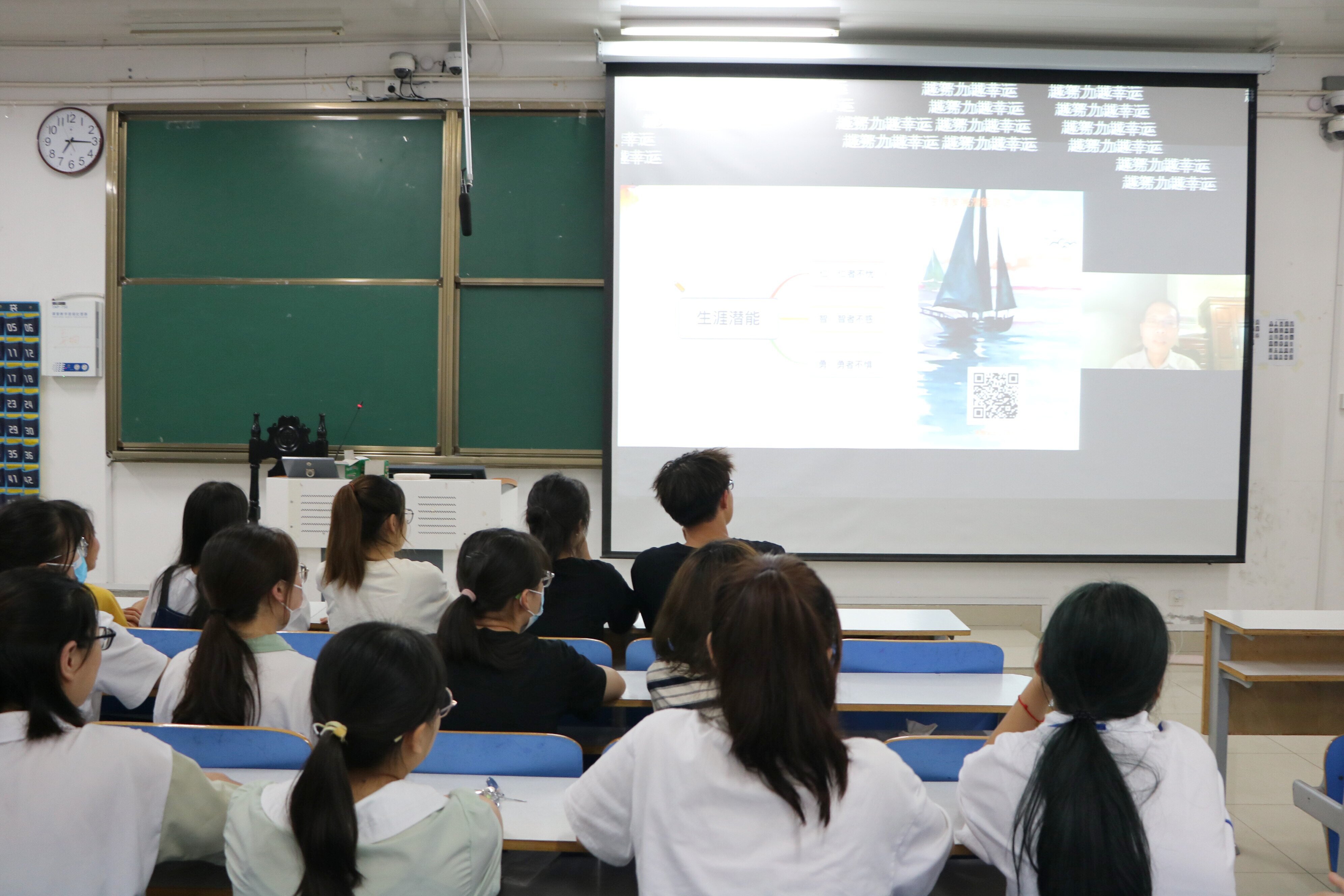 晚上,beat365官网2021级全体同学在516教室观看由北京大学学生心理健康教育与咨询中心副主任、副教授庄明科讲解的直播。他以“发现生涯潜能,解析求职之道”为题,将直播课分为探索自我和求职就业两部分。他给在疫情下求职的毕业生提出两点建议:一是要重视内心需求,在诸多选择和诱惑面前不迷失自我。二是要重视社会需求,刻意雕琢自我,敦促生涯发展。他强调,面对严峻的疫情后就业形势,要保持良好心理状态,熟练掌握“四个思维”,正确运用“三个改变”,实现自我管理和自身内在价值的指引。