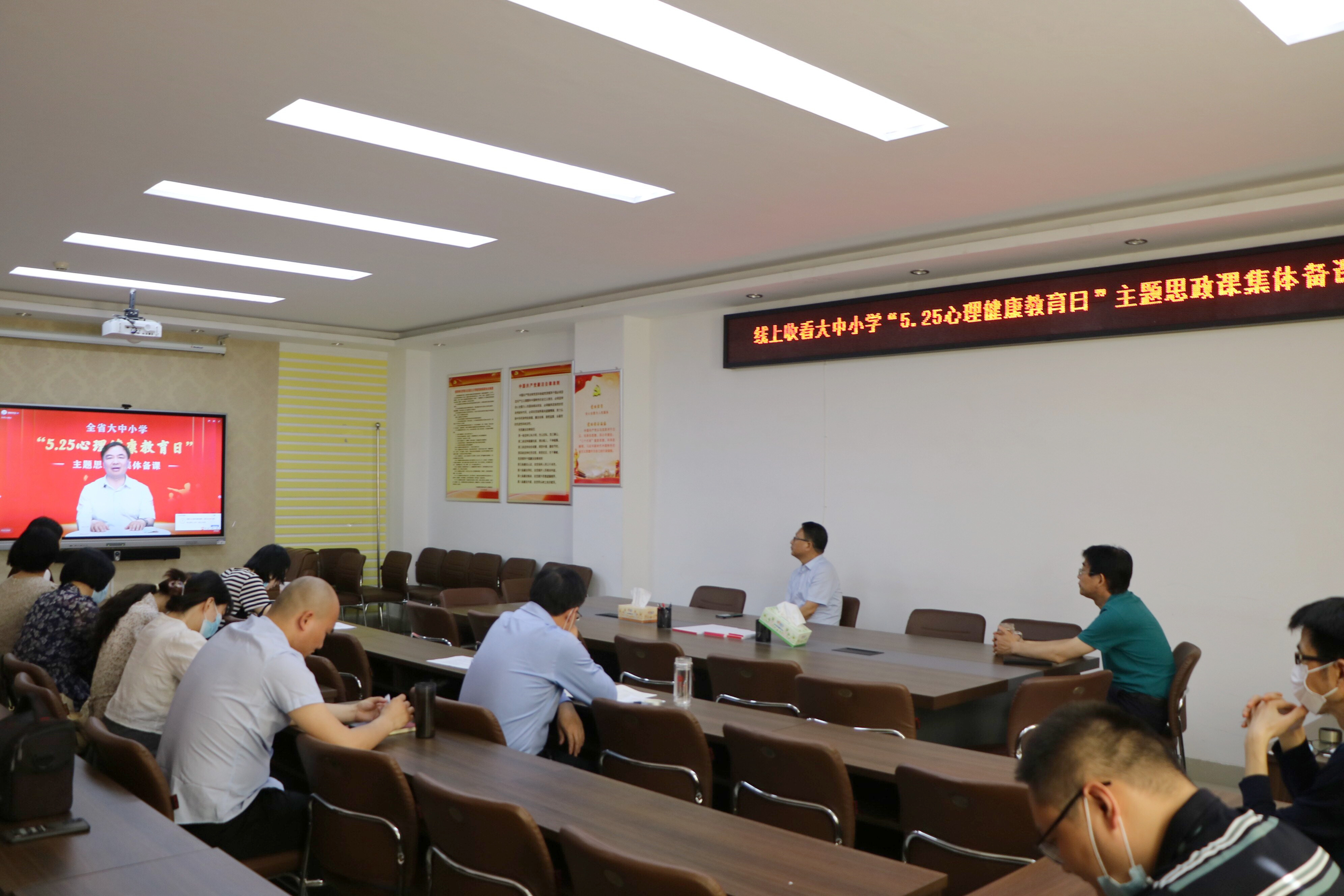 上午,beat365官网全体思政课教师在323会议室观看学习全省大中小学“5.25心理健康教育日”主题思政课集体备课直播课。在直播中,四位来自大中小学各学段的教师以深入学习贯彻习近平总书记关于心理健康教育重要论述为重点,结合疫情期间学生心理健康疏导问题分别以“认识自我”、“悦纳自我”、“突破自我”、“超越自我”为题展开具体讲述。