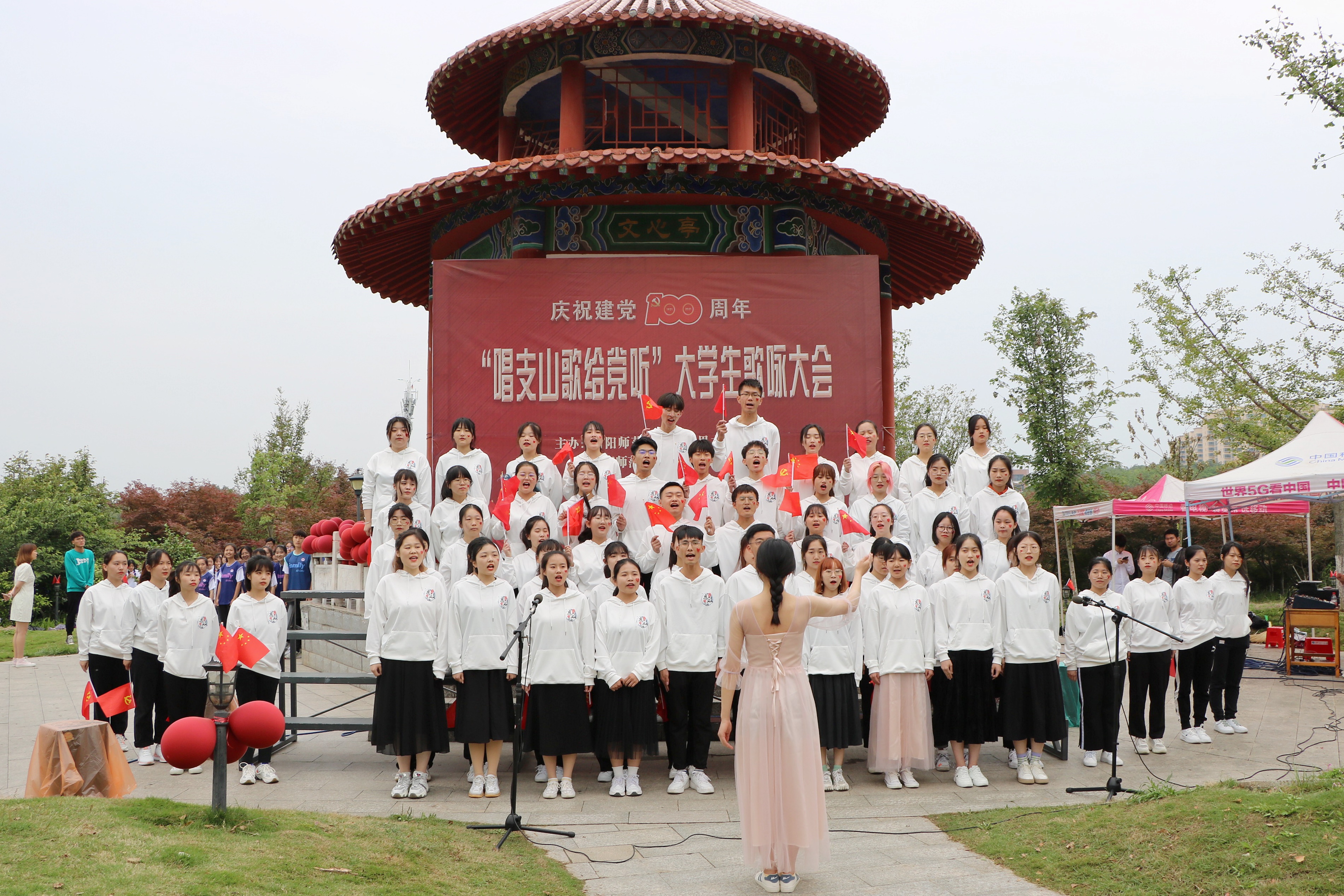 为弘扬以热爱共产党、热爱祖国为核心的民族精神,激励广大青年不惧风雨、勇挑重担。5月23日下午,beat365亚洲版官网、法学与社会学院联合举办的“唱支山歌给党听”大学生歌咏大会在文心亭隆重举办。党委学工部部长岳宗德 、校团委书记王建旭、beat365亚洲版官网、法学与社会学学院主要负责同志与近千名师生参加了此次活动。活动由赛孜古尔江、申旭阳主持。