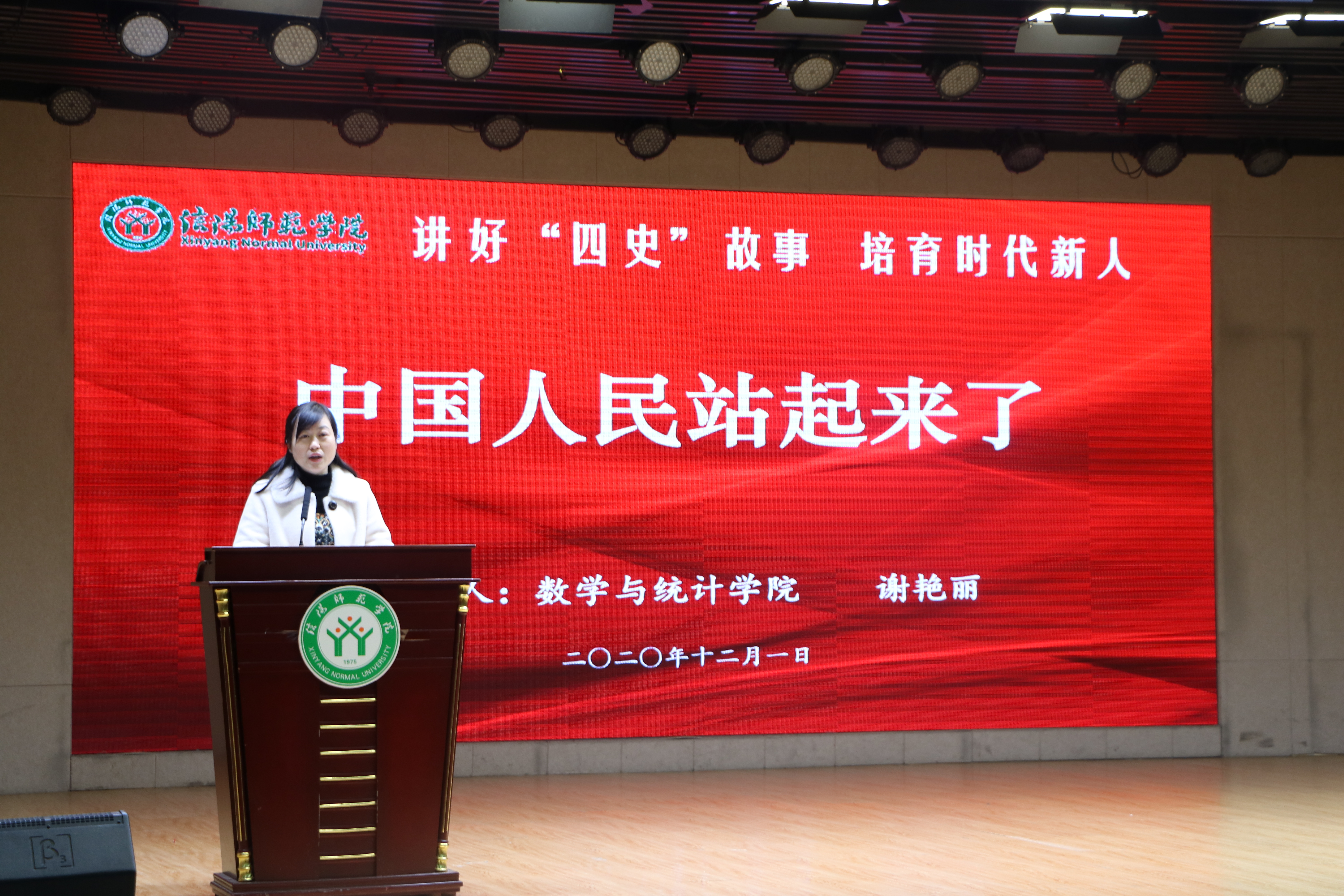 12月1日下午三点,“讲好四史故事,培育时代新人”主题报告会在理科楼报告厅顺利召开。国际教育学院党委副书记姚新春、beat365亚洲版官网团委书记曹栋、体育学院辅导员柴九昌、数学与统计学院辅导员谢艳丽、文学院辅导员郭子悦、教育科学学院辅导员田园出席本次会议。beat365亚洲版官网、体育学院、国际教育学院和商学院部分新生共同聆听本次会议。会议姚新春主持。