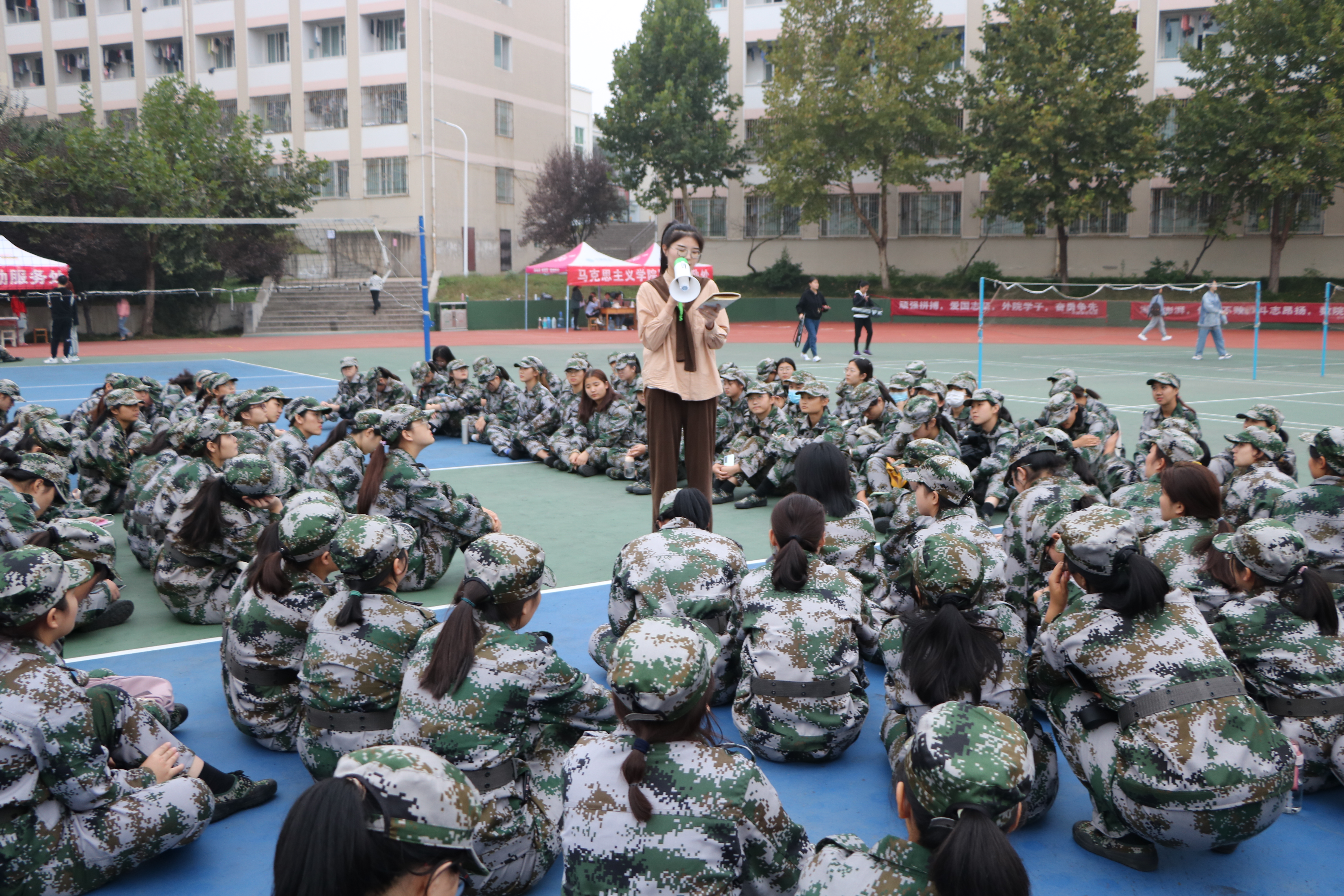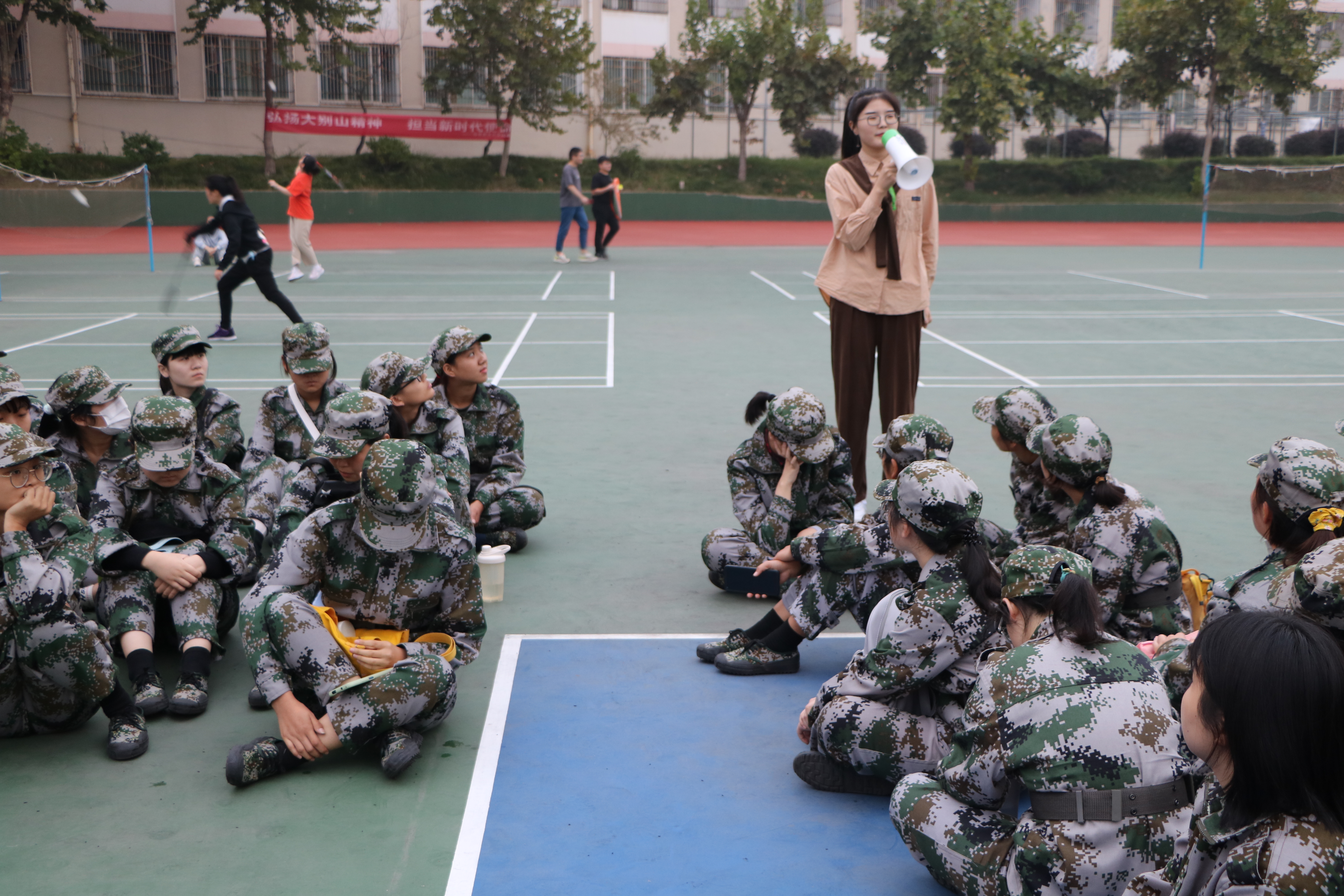 为继承红色基因,发扬革命精神。 10月13日下午,beat365亚洲版官网优秀“青马”工程学员王文慧在新生军训场地进行大别山红色精神的宣讲。