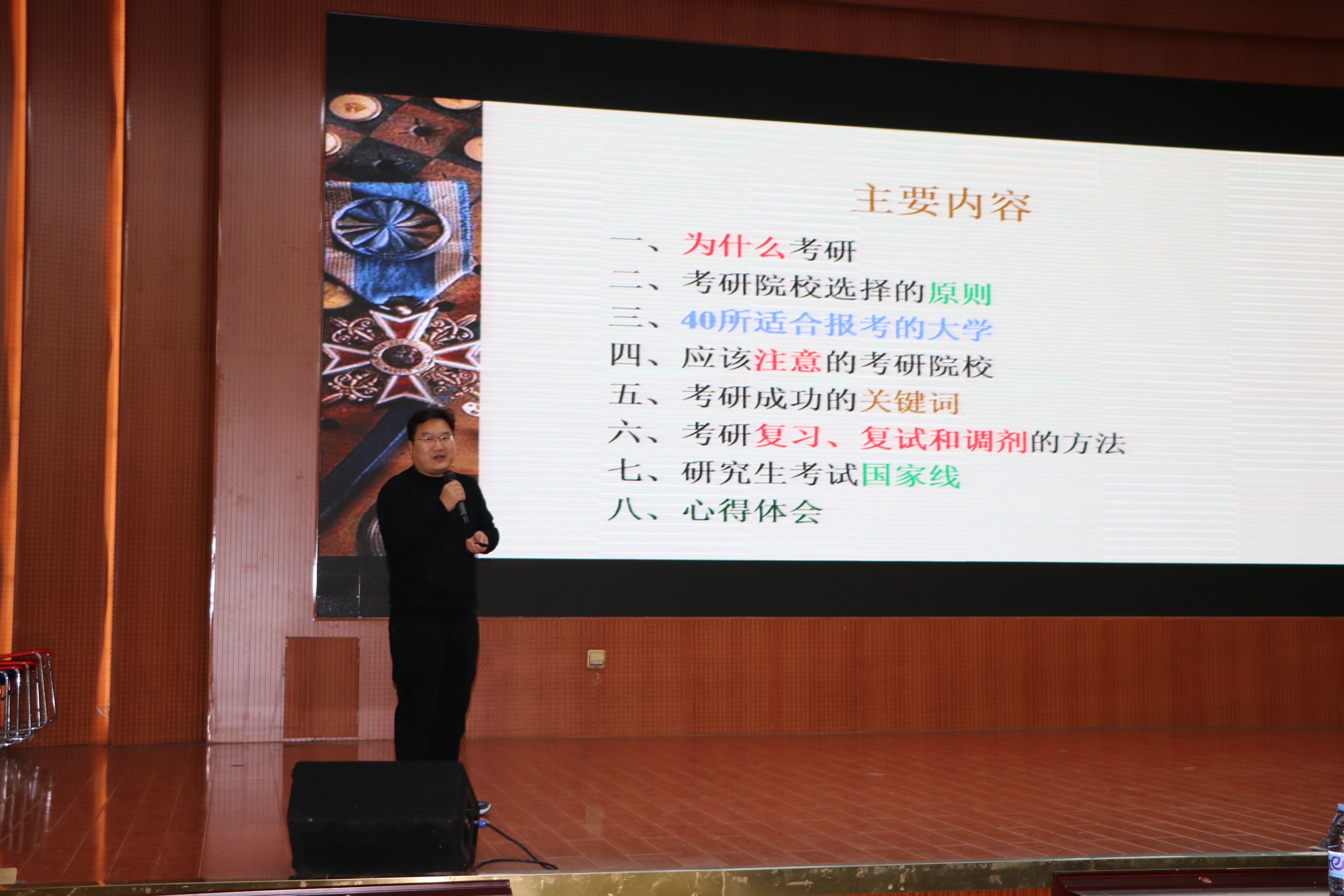 论坛在考研服务社自制考研励志视频中拉开序幕。首先,张伟依次介绍了40所考研院校,为文理科考研学子提供了众多考研院校选择。接着,孙鑫结合事实案例向同学们说明考研的专业选择要结合自身所学专业和兴趣爱好,理性选择。随后,曹梦真针对高年级的考研学生提出了相关建议。她表示,大三学子要对有意向报考的院校试题有所了解,大四学子则要坚定考研目标,合理规划时间,提高执行力,做到“学有所得”。杨青青指出了英语、专业课学习的重要性并建议同学们要积极锻炼身体,不断提高身体素质。优秀考研学生代表宗媛媛结合自身考研经历,从选取专业和院校、制定复习计划、调整心态等方面分享个人经验并详细解答了同学们关于考研的问题。最后,宋羽潇作为学生代表为考研的学长学姐加油助力。本次论坛内容丰富,生动有趣,期间穿插的抽奖互动环节,同学们踊跃参与,现场氛围热烈。